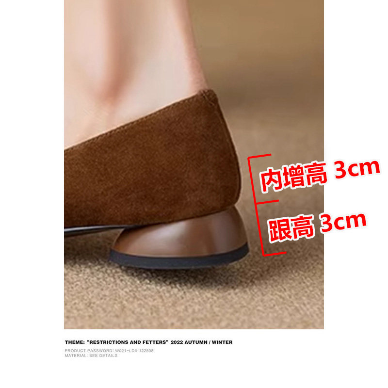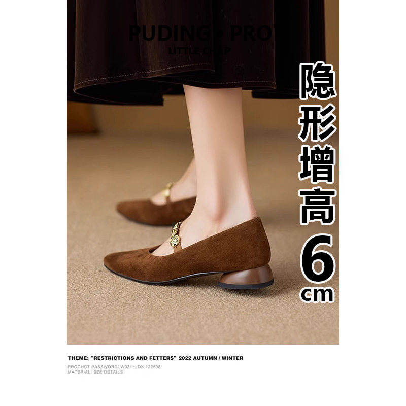 内增高真皮绒面低跟单鞋女2026秋冬新款小个子法式复古玛丽珍女鞋