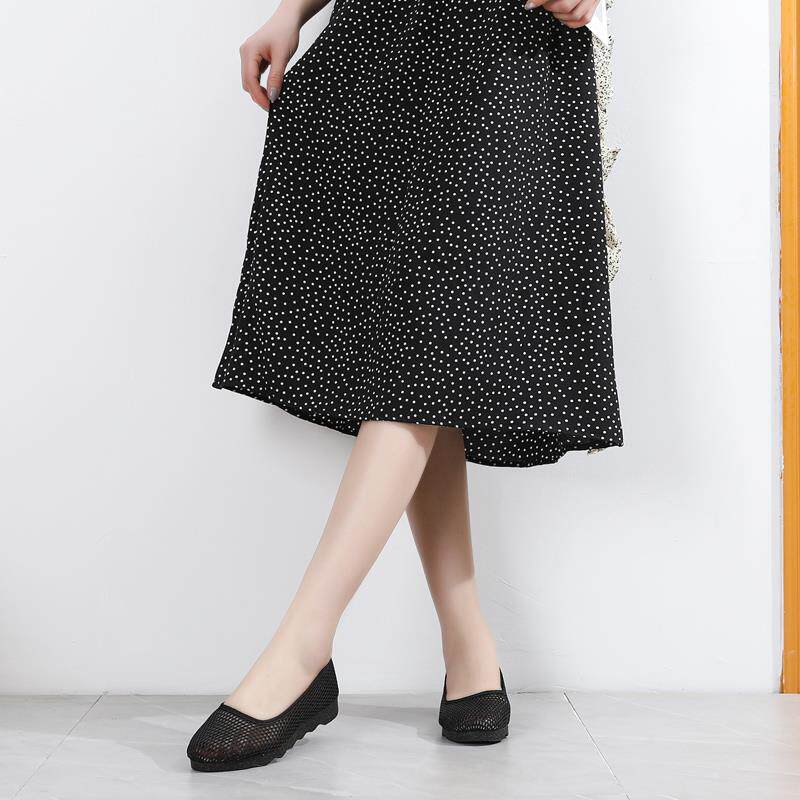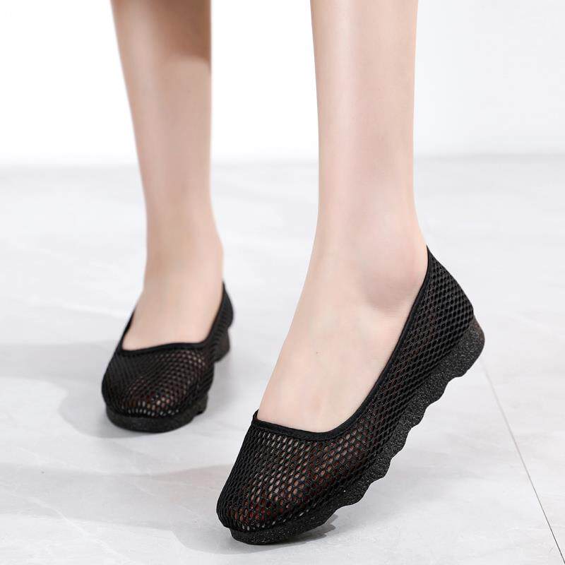 夏季女网鞋一脚蹬黑色工作鞋透气软底网面女鞋舒适网眼镂空妈妈鞋