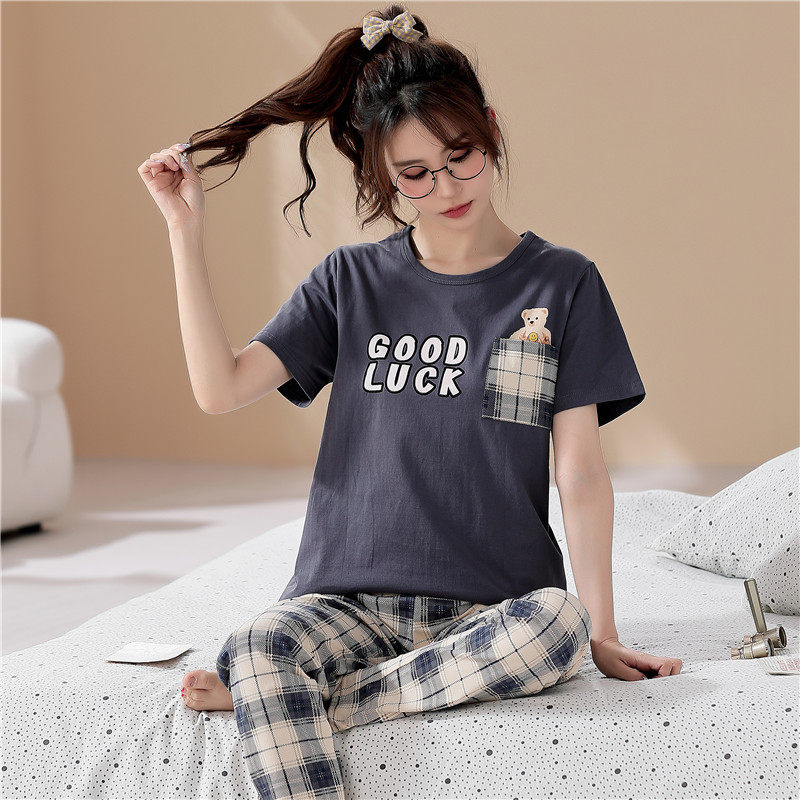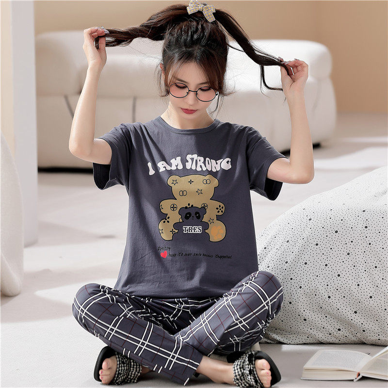 大童睡衣女孩夏季短袖长裤纯棉青少年初中学生12-15岁少女家居服