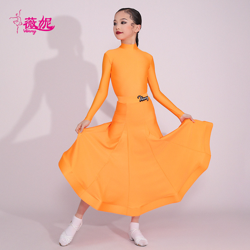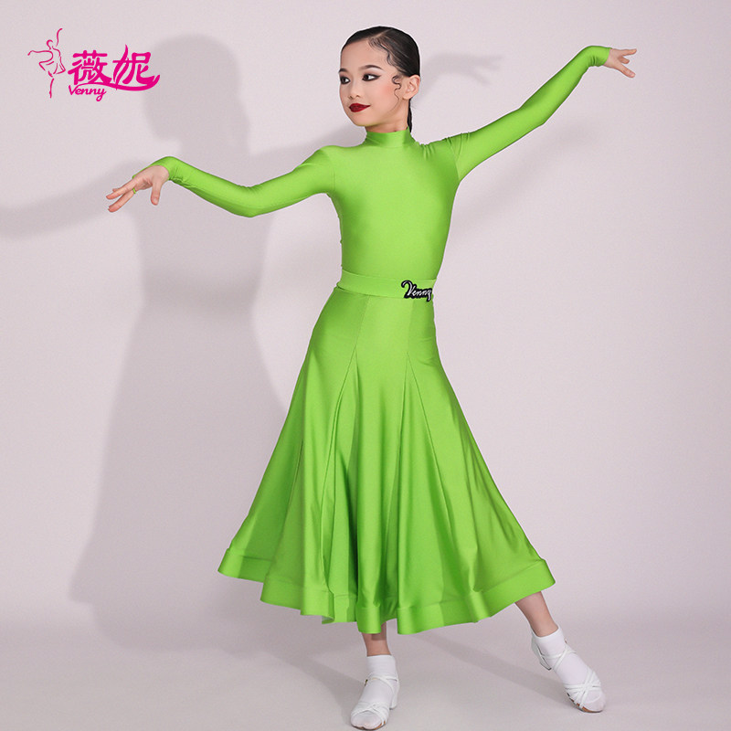 薇妮拉丁舞规定服2026高领长袖国标舞专业比赛服女儿童摩登大摆裙