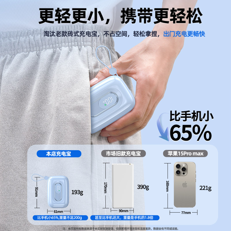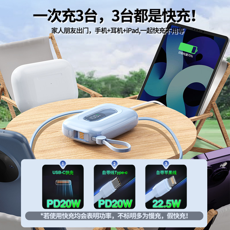 【新国标3C认证】充电宝超大容量20000毫安自带线超薄小巧便携快充适用小米华为苹果专用手机官方正品上飞机