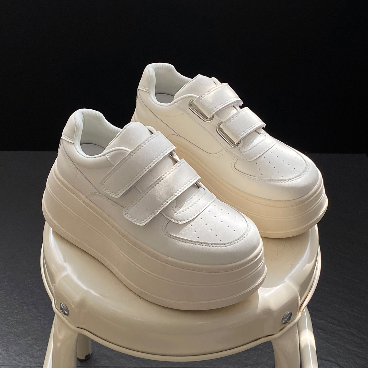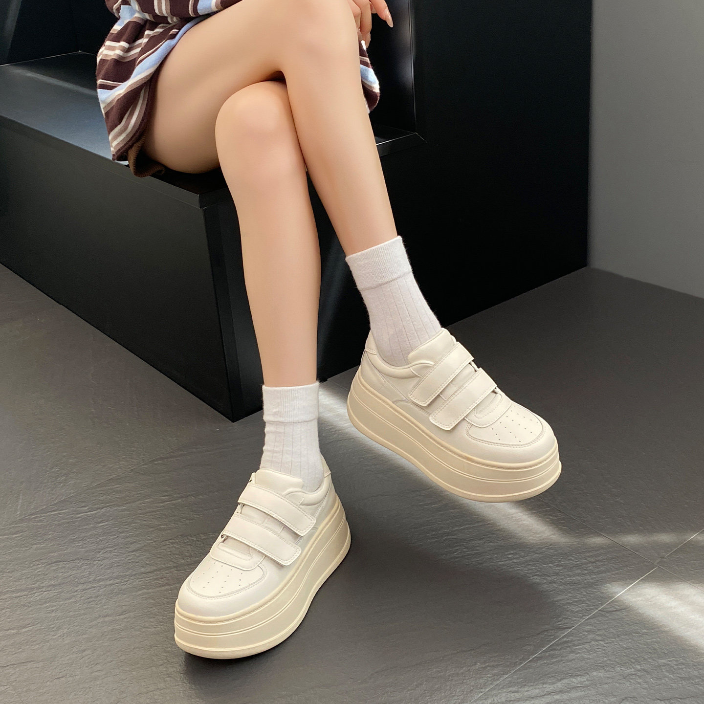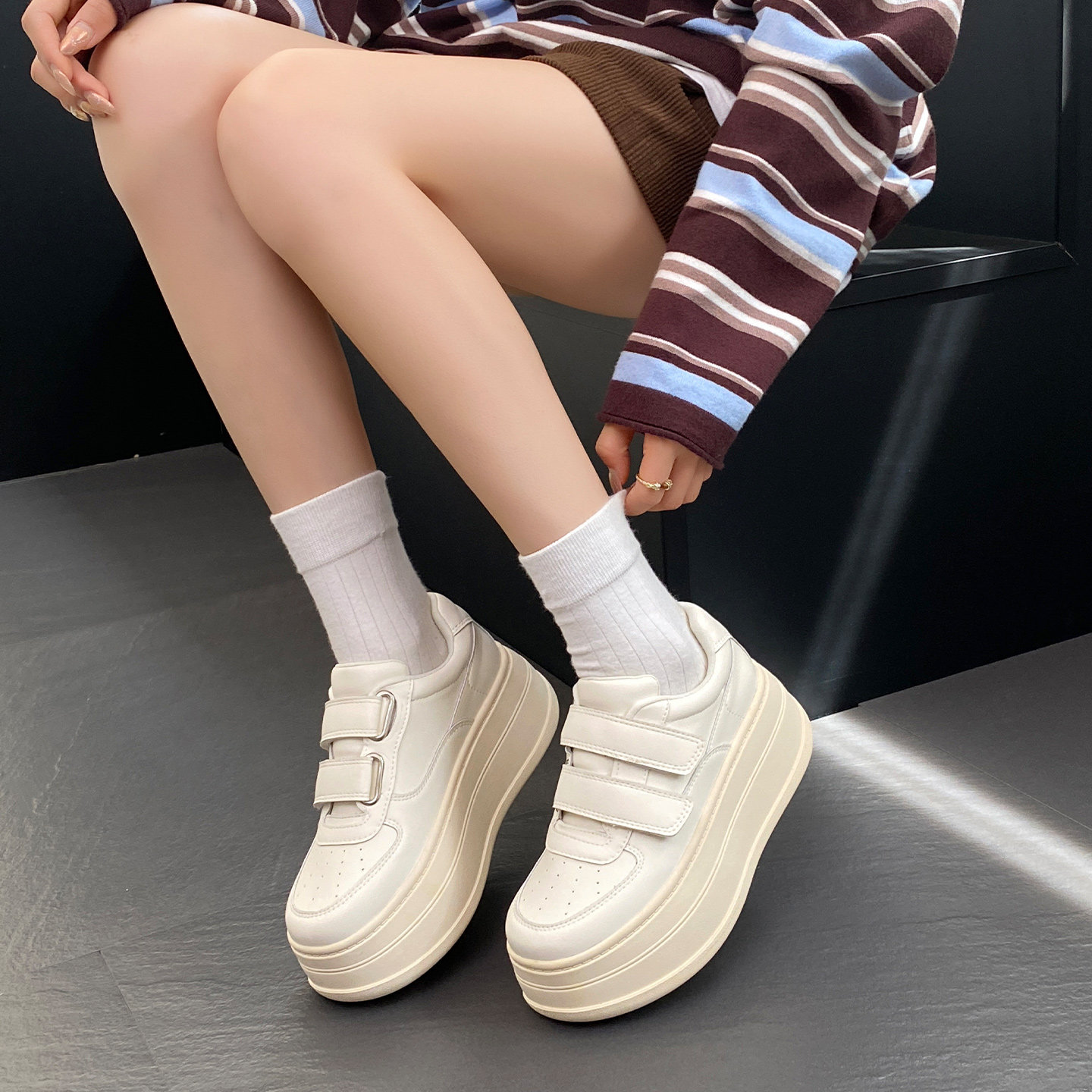 厚底8cm内增高小白鞋女2026年新款春季小个子魔术贴运动休闲板鞋