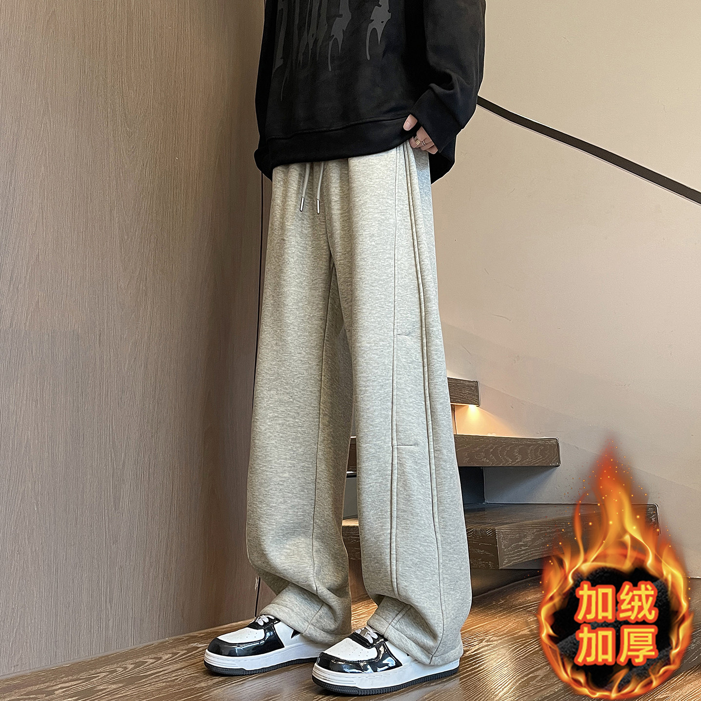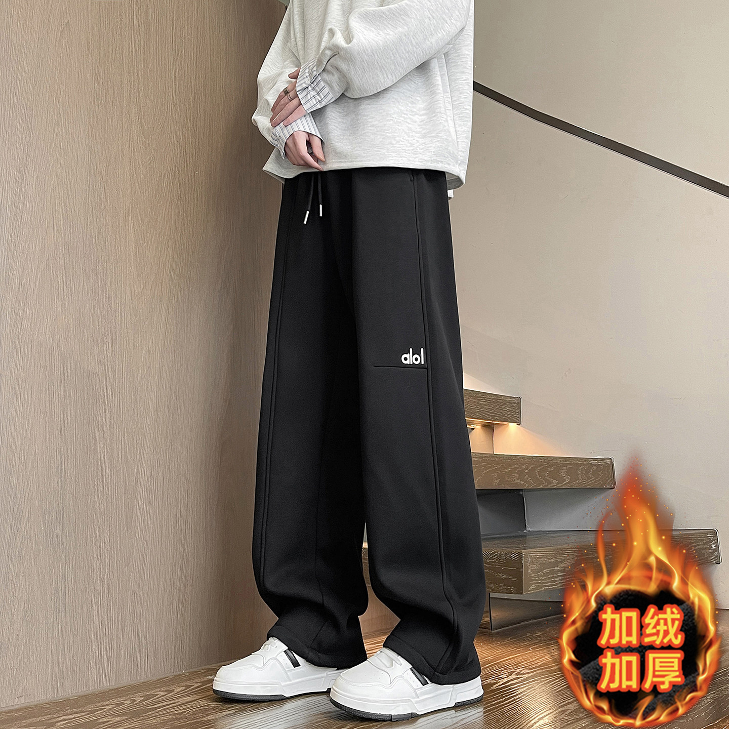 秋冬款加绒加厚裤子男孩初中高中学生直筒休闲长裤青少年纯棉卫裤