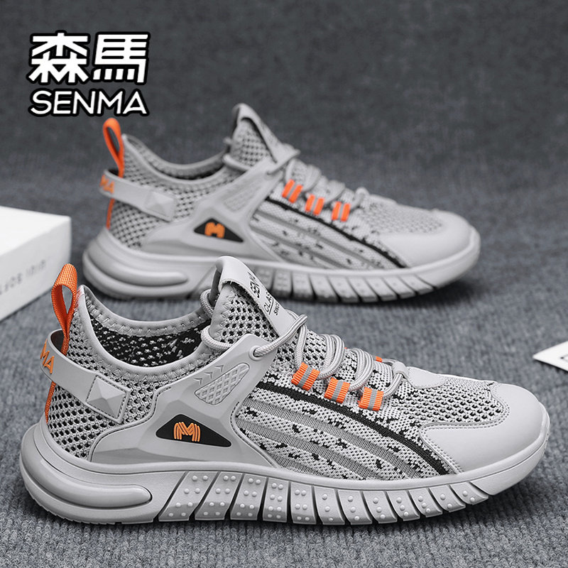森马男鞋夏季透气薄款网面百搭男士运动休闲跑步轻便软底增高网鞋