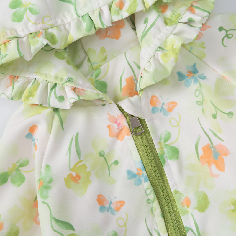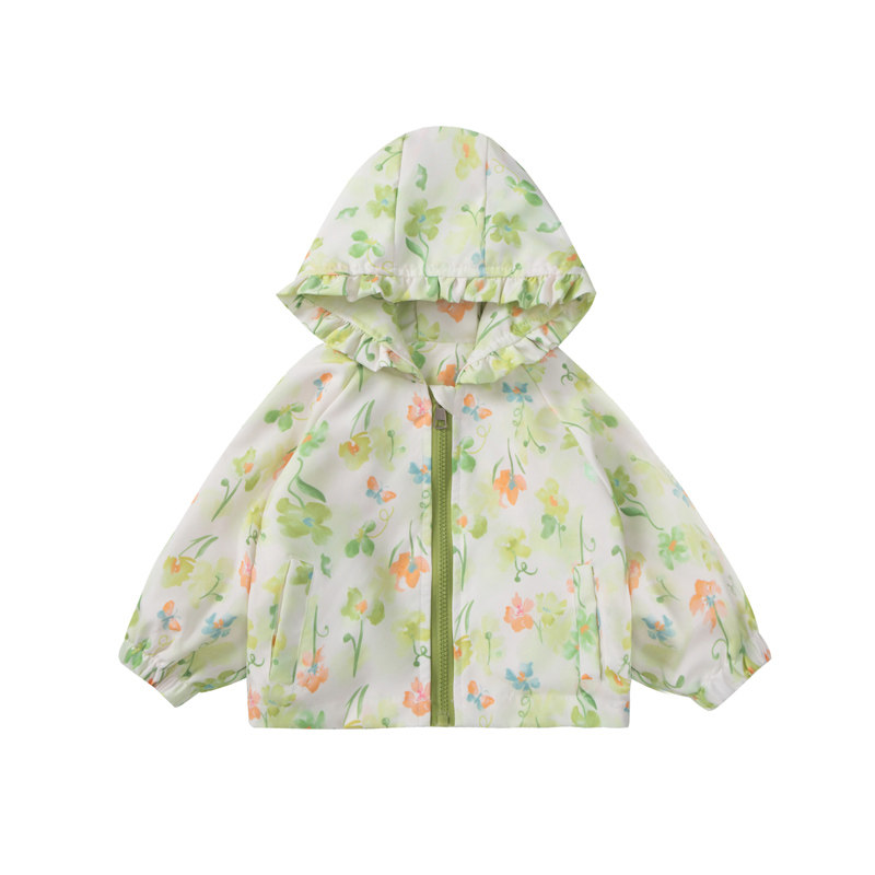 春秋季中小童新款洋气冲锋衣女童满印外套宝宝薄款春装早春穿搭潮