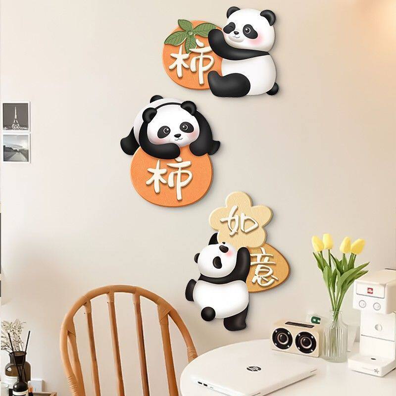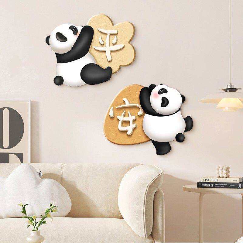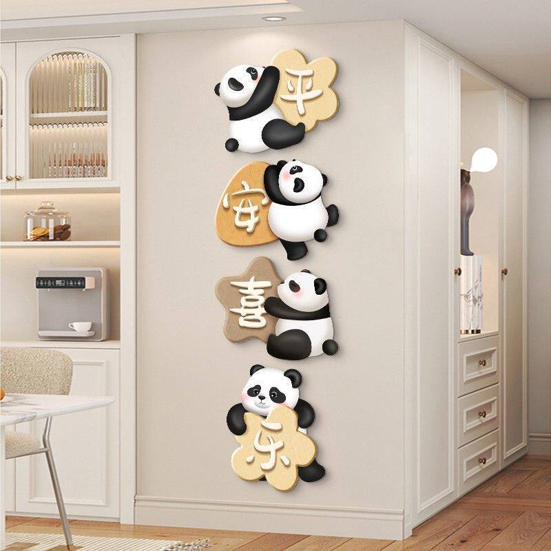 暖居熊猫装饰画现代简约客厅电视卡通立体3d入户玄关走廊墙面挂饰