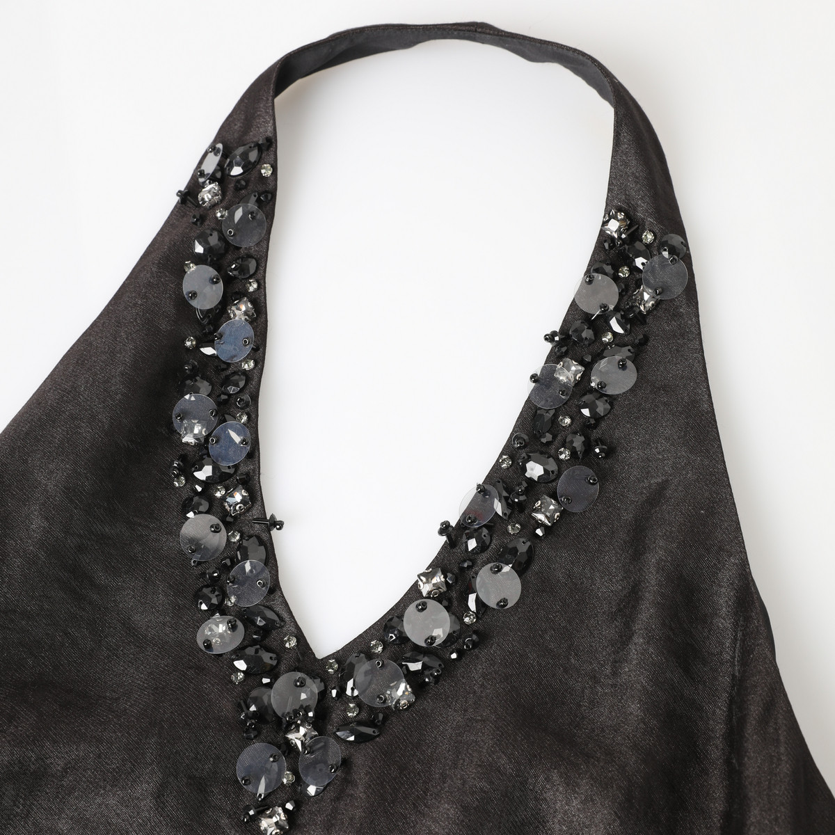 西町村屋重工钉珠挂脖连衣裙夏季新款气质无袖短款裙子AA9502015