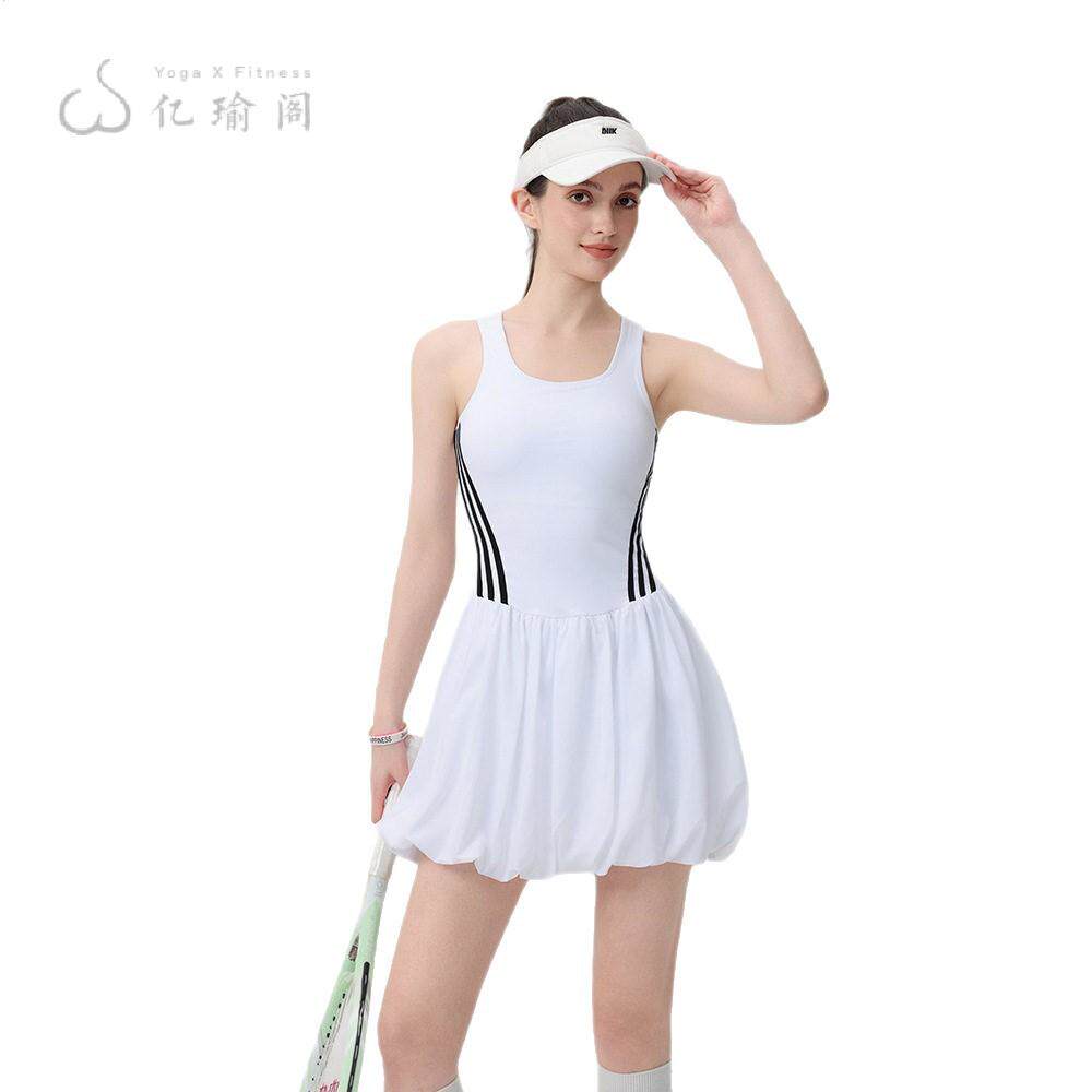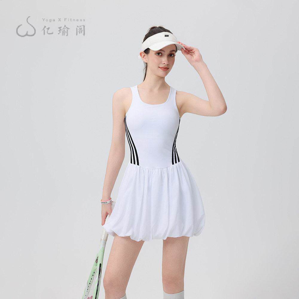 网球裙女连衣裙袖显瘦专业羽毛球服白色新款网球服花苞裙