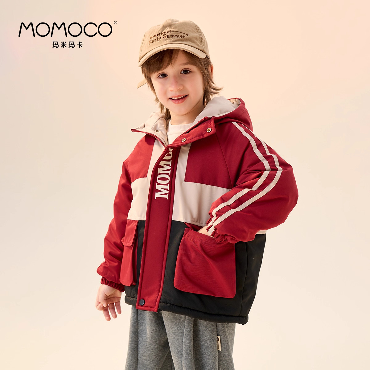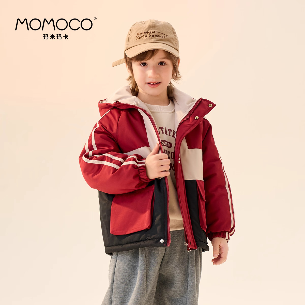 MOMOCO/玛米玛卡男童棉服2026冬季新款中大童加厚保暖外套过年服
