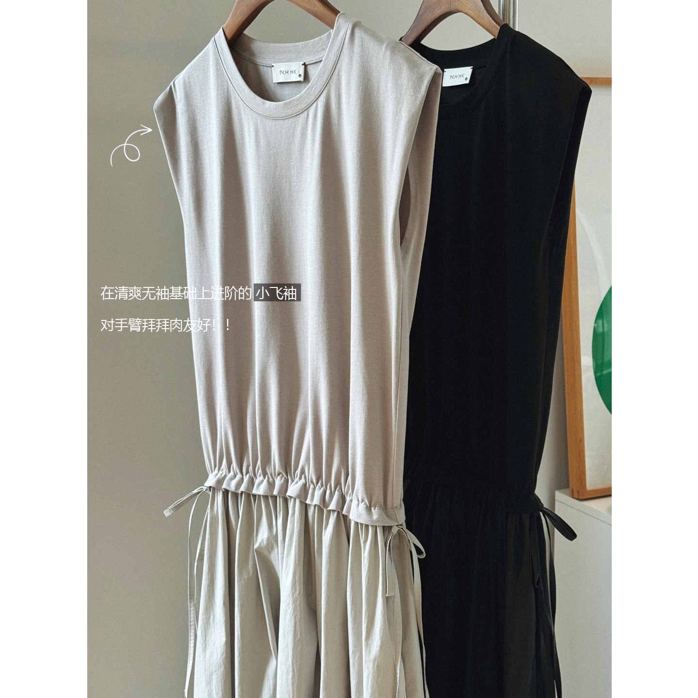 PKH.HK特 夏上新 私服日常凉爽小飞袖设计感遮肉肉橡筋收腰连衣裙