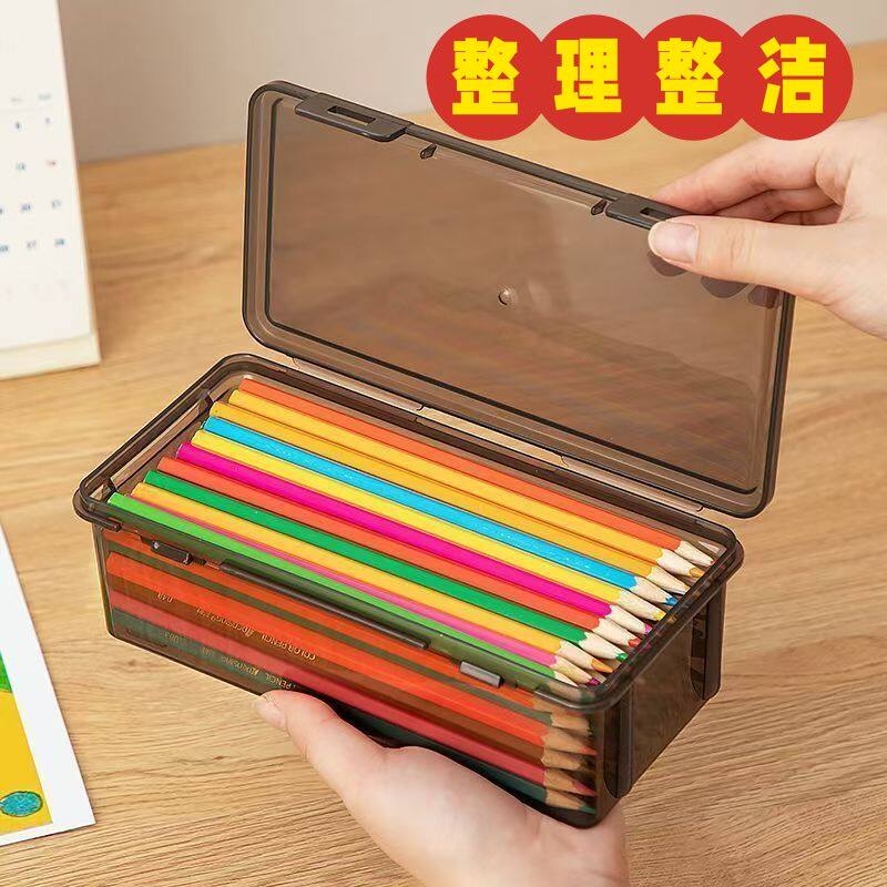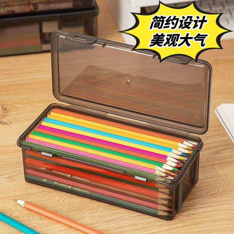 文具收纳盒大容量透明黑色铅笔盒子加厚笔筒装彩铅蜡笔素描笔袋
