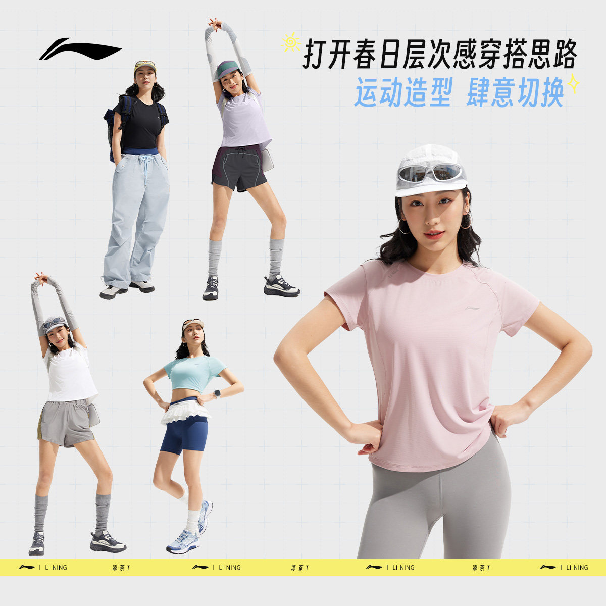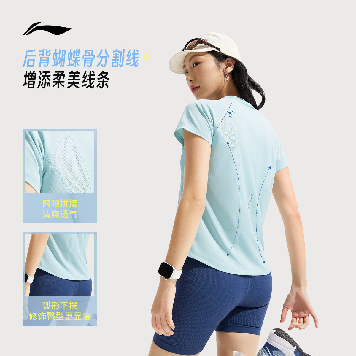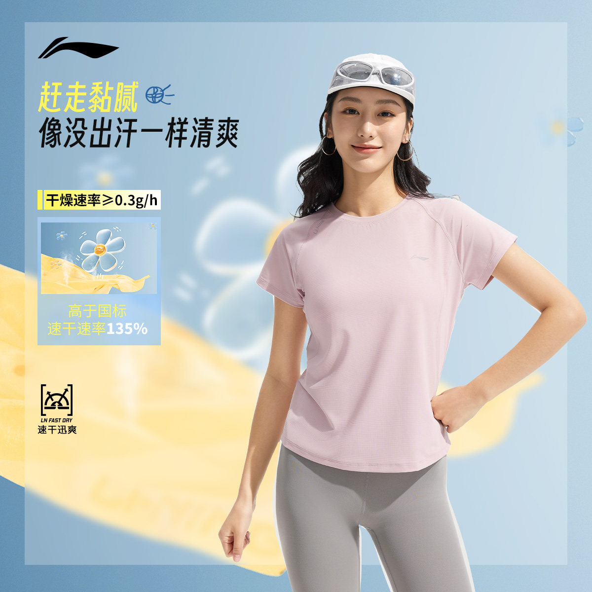 李宁速干T恤女夏季官方新款瑜伽健身透气跑步速干上衣女运动短袖