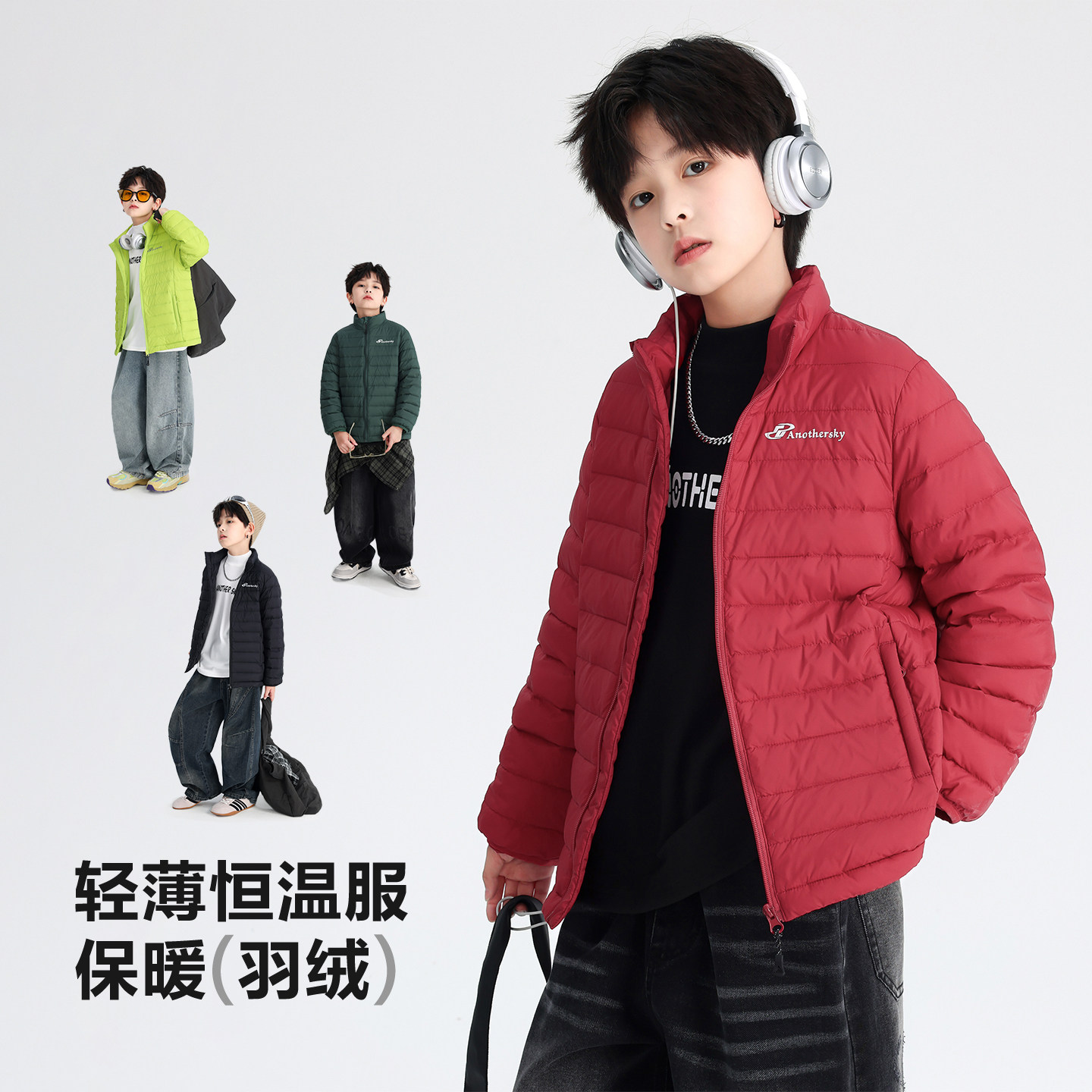 男童冬季轻薄90安心绒校服内胆羽绒服2026新款青少年儿童免洗外套