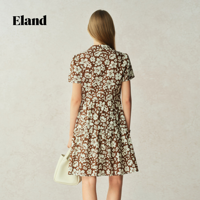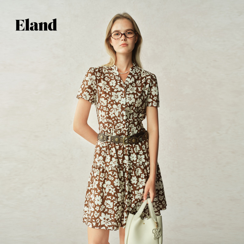 Eland衣恋连衣裙女度假风短袖收腰显瘦裙2025秋季