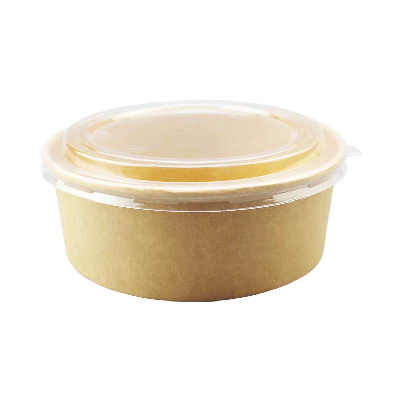 一次性环保可降解加厚圆形牛皮纸打包碗1000ml外送快餐水果盒带盖
