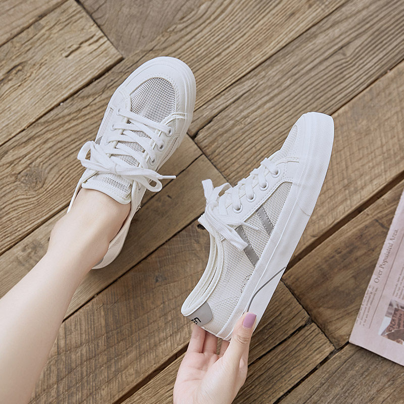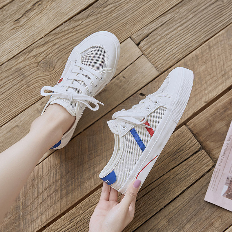 人本小白鞋女网眼2025新款夏季薄款网鞋女透气网面帆布鞋百搭板鞋