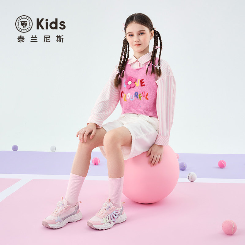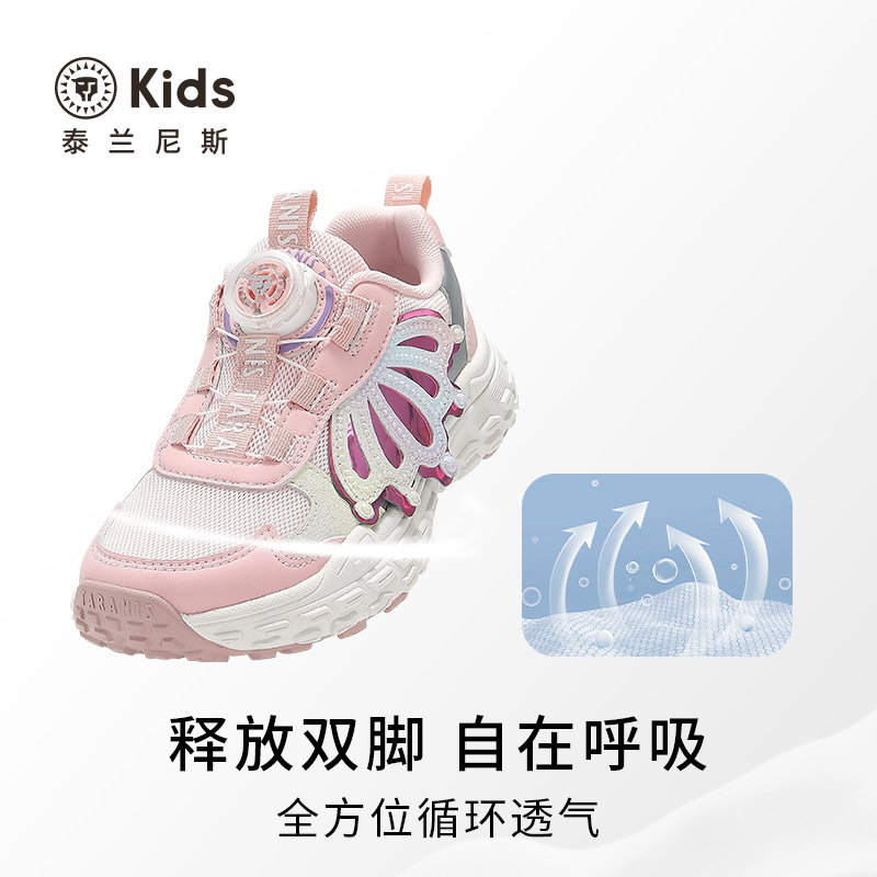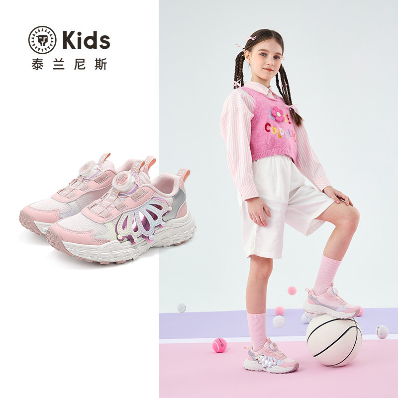 泰兰尼斯kids春款女童运动鞋甜美跑步鞋中大童时尚休闲鞋跑步鞋