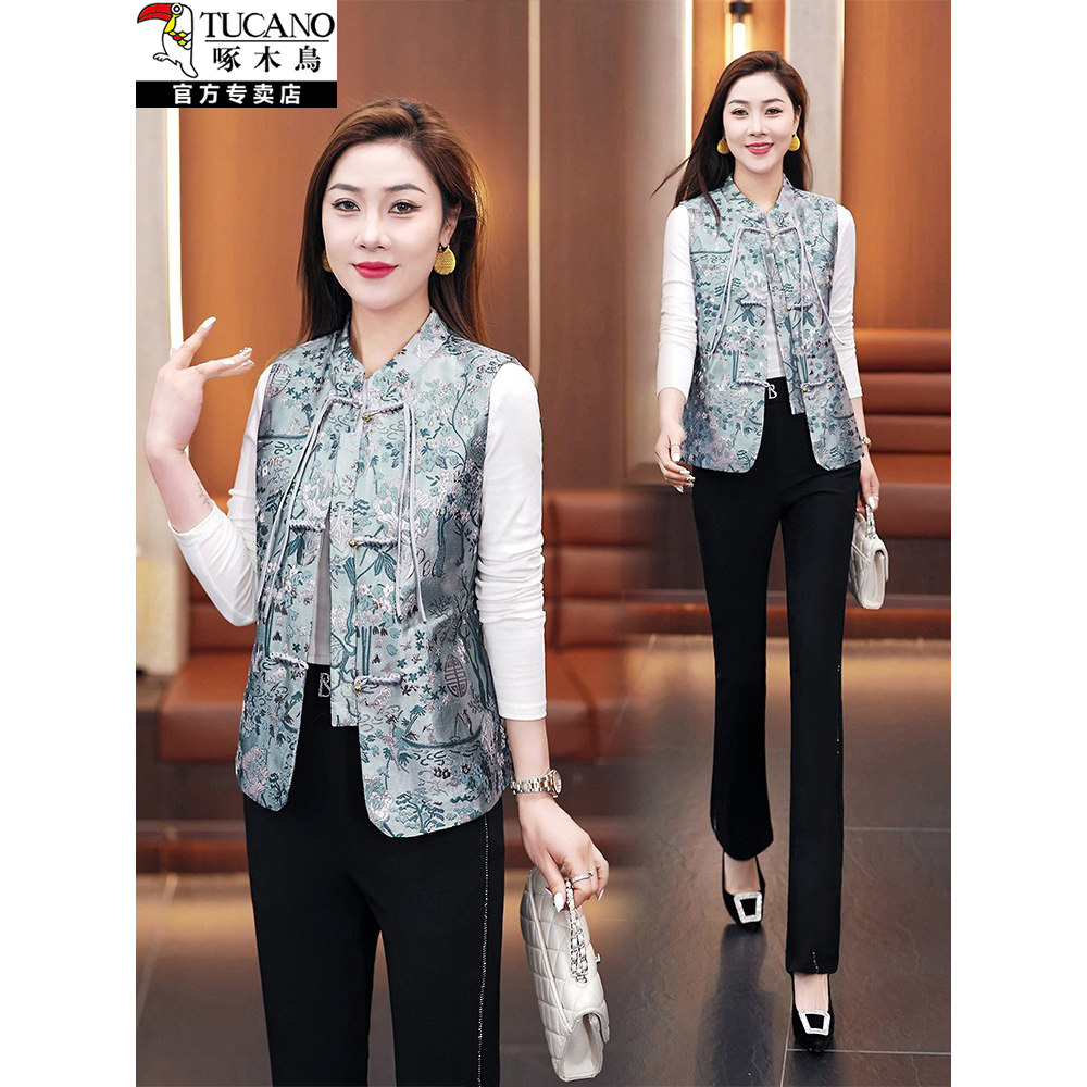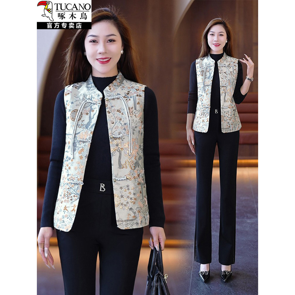 啄木鸟国风唐装马甲女春秋外套2026新款爆款春季妈妈坎肩马夹外穿