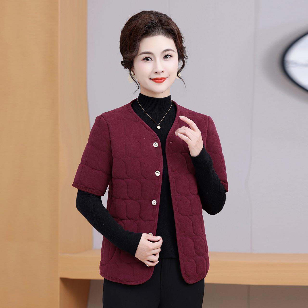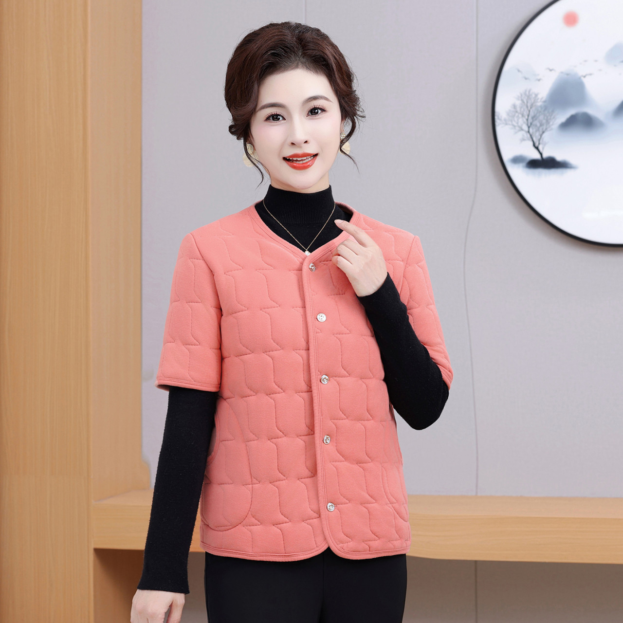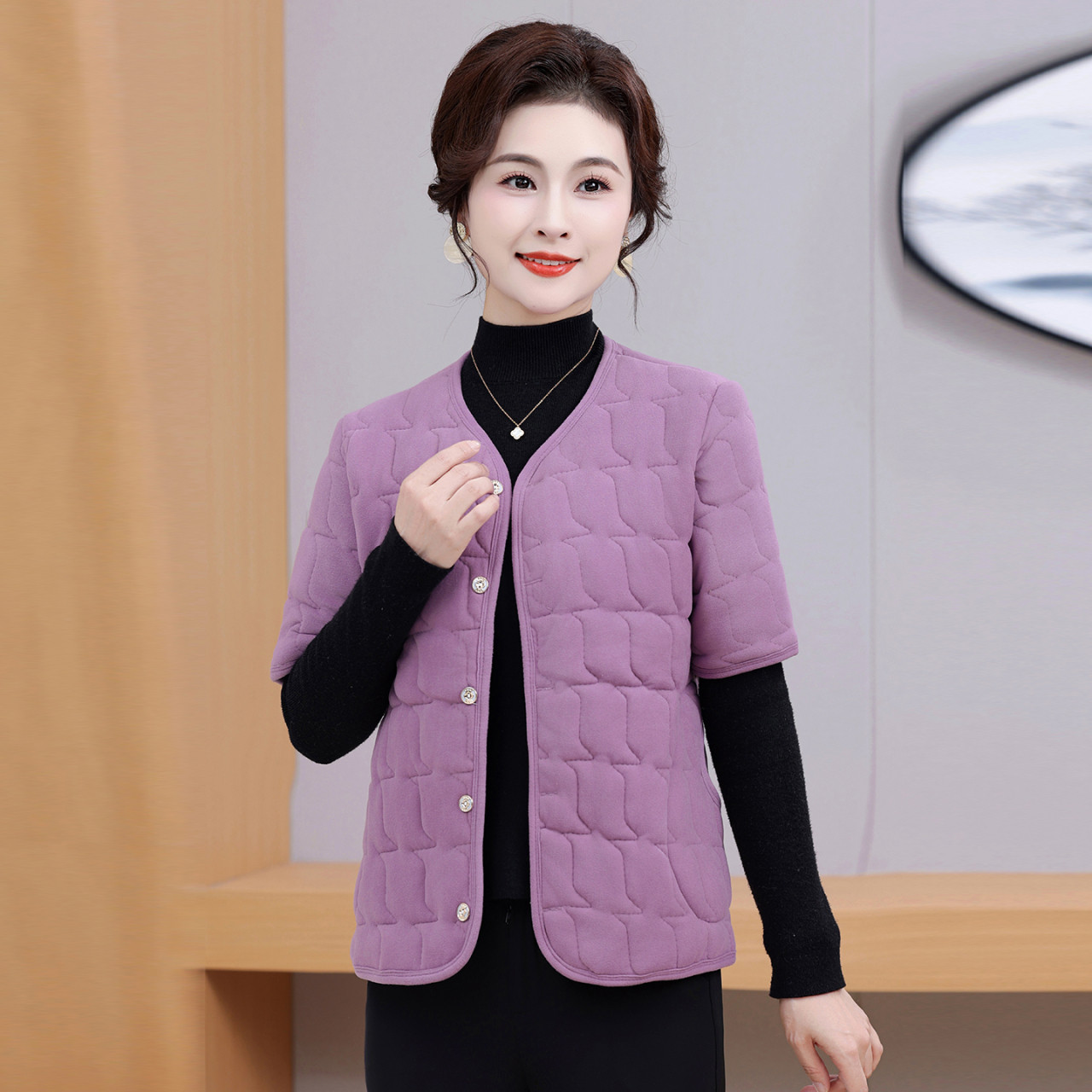 中老年妈妈德绒保暖半袖棉衣女士马甲冬季加绒加厚防寒棉背心外套