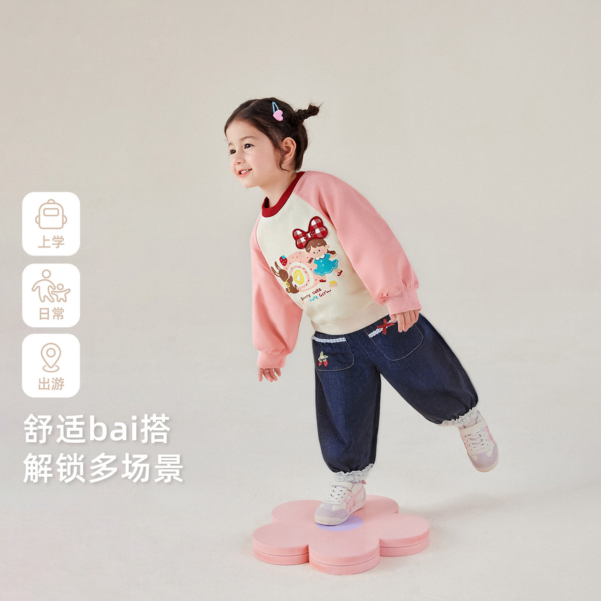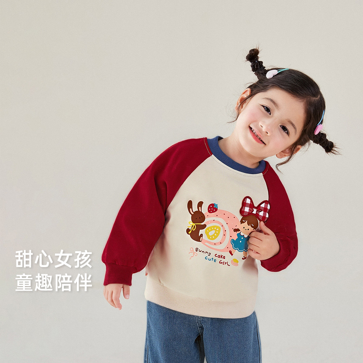 [7A抗菌]女童长袖卫衣宝宝撞色圆领春装小童宽松休闲儿童春季上衣