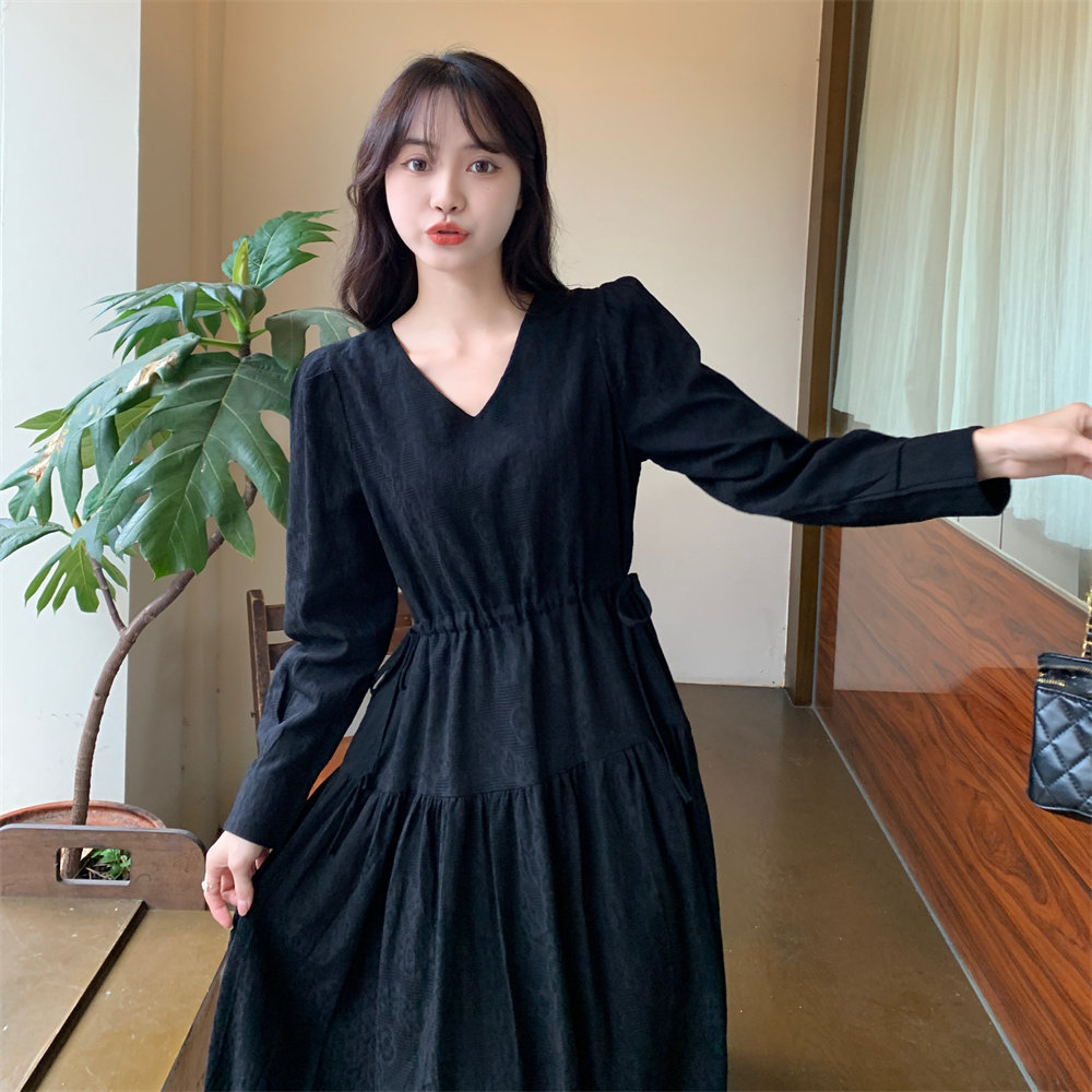 大码2025早秋170高个子超长裙到脚踝收腰长款连衣裙森系显瘦裙子