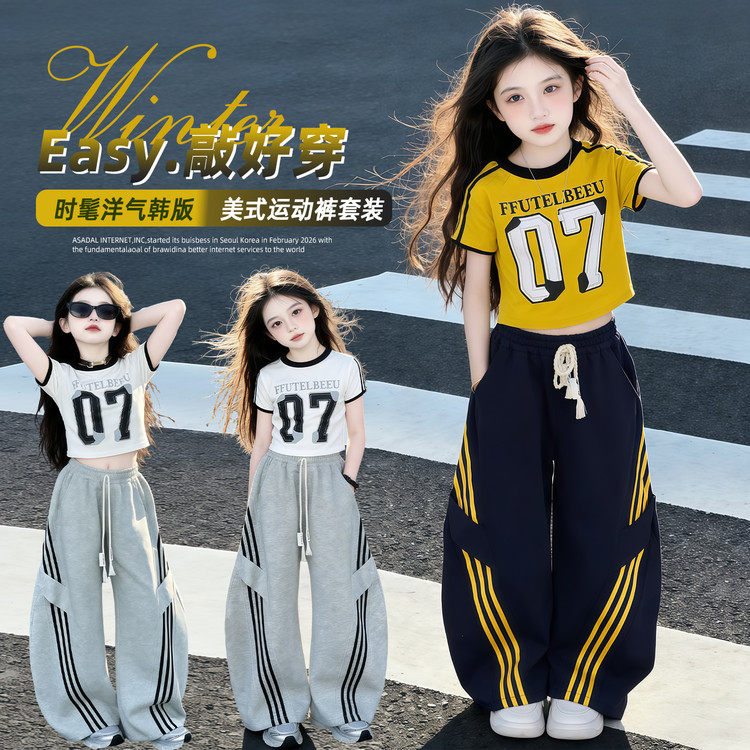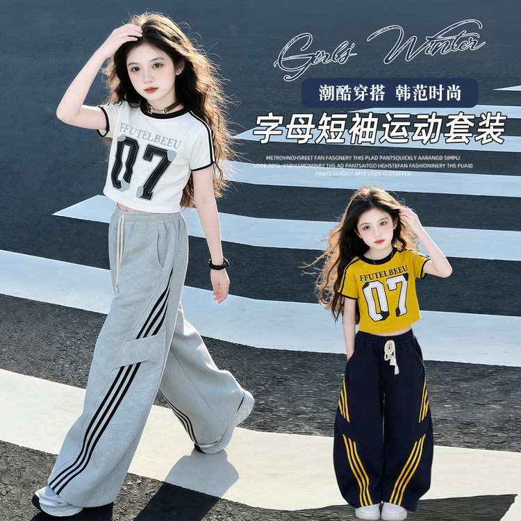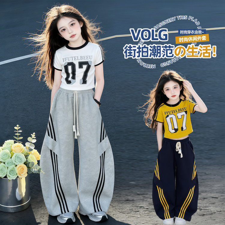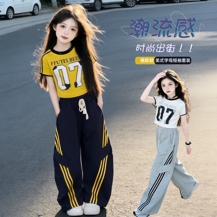 女童夏装套装2026新款洋气儿童短袖T恤夏季女大童休闲运动两件套