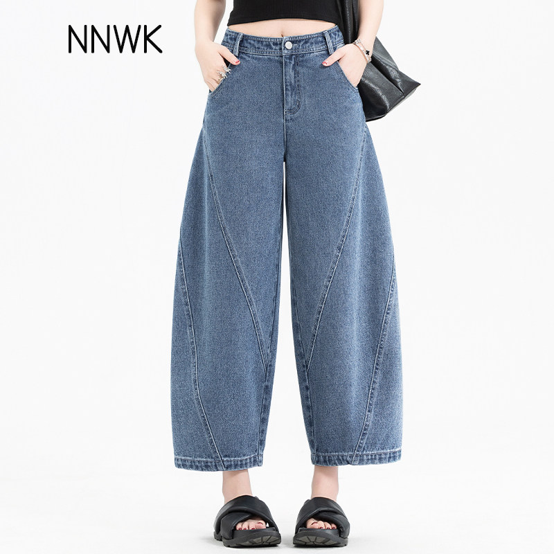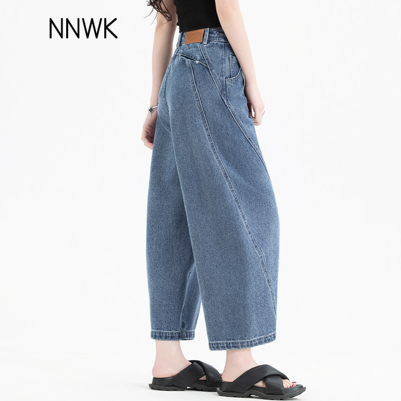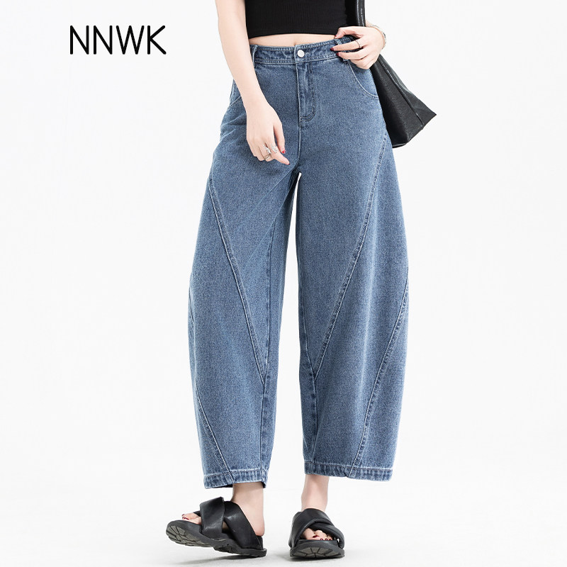 八分牛仔裤女2026新款夏季薄款小个子女士弯刀裤宽松七分裤设计感