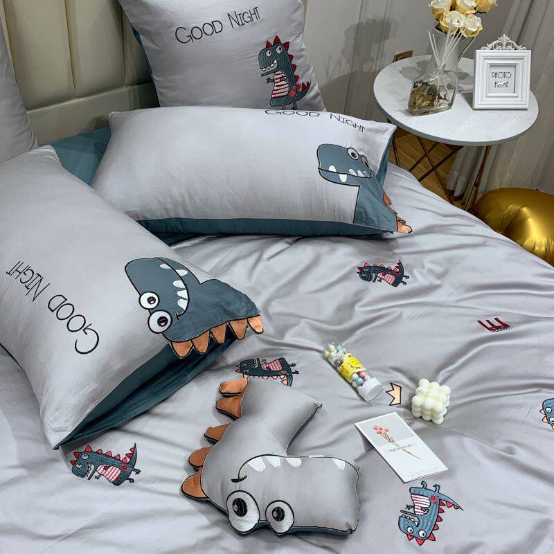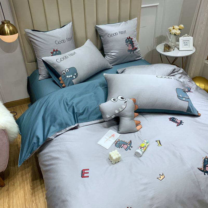 儿童四件套100全棉被套床单男孩女房春夏款三件床上用品