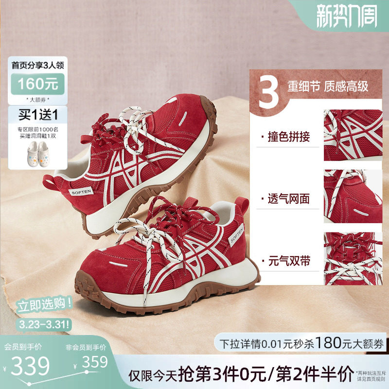 百思图26春季商场新款厚底增高老爹鞋红色运动鞋女休闲鞋D3889AM6