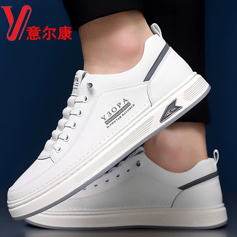 意尔康男鞋2026春季新款真皮休闲皮鞋男士软底百搭板鞋透气小白鞋