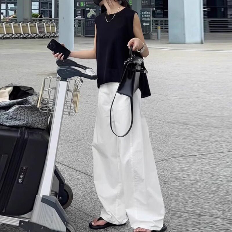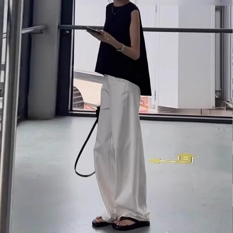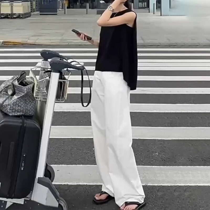 流行爆款白色休闲裤2026新款夏季阔腿裤薄款夏天女款直筒裤长裤子