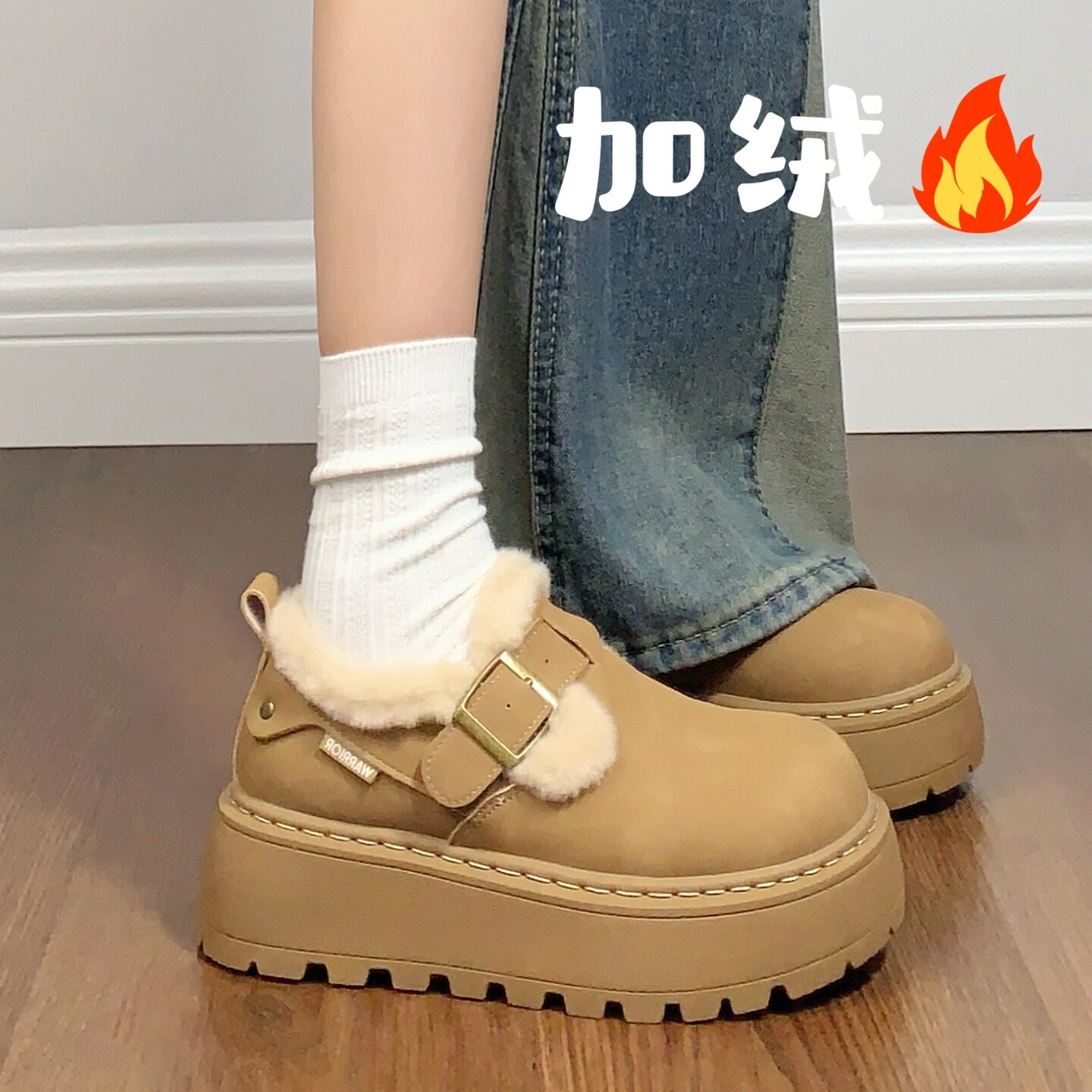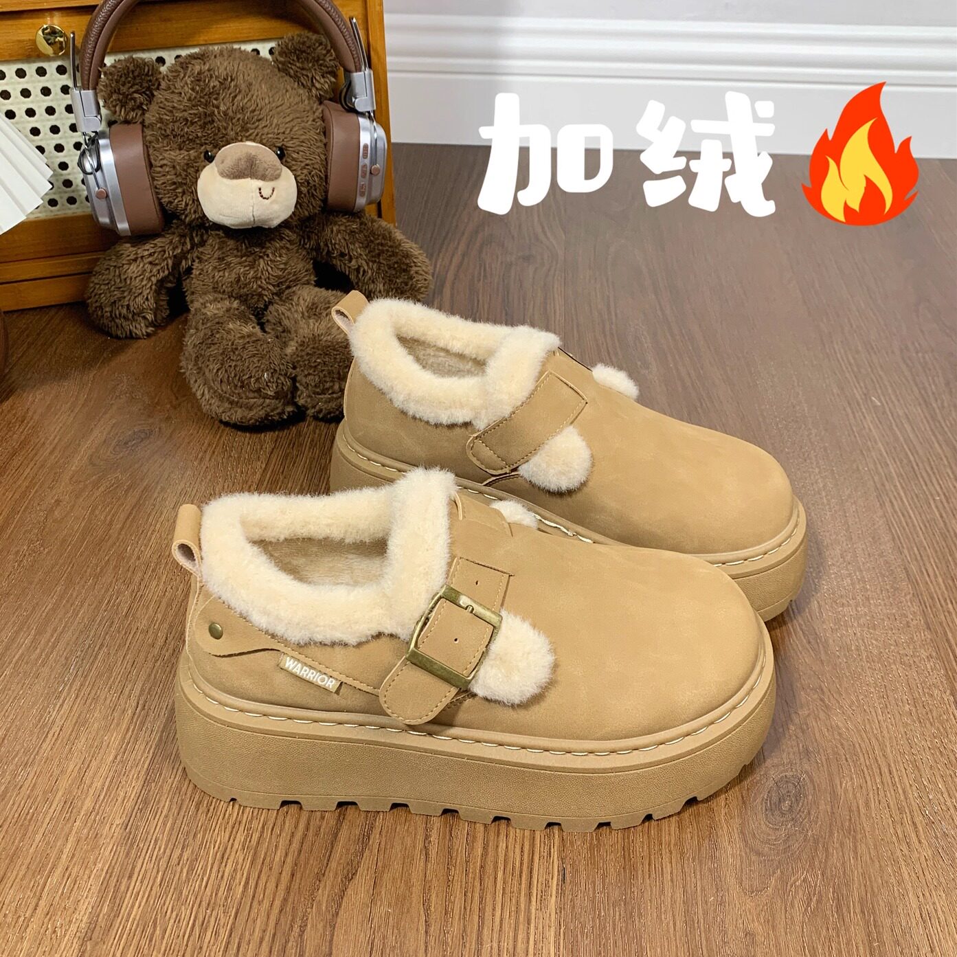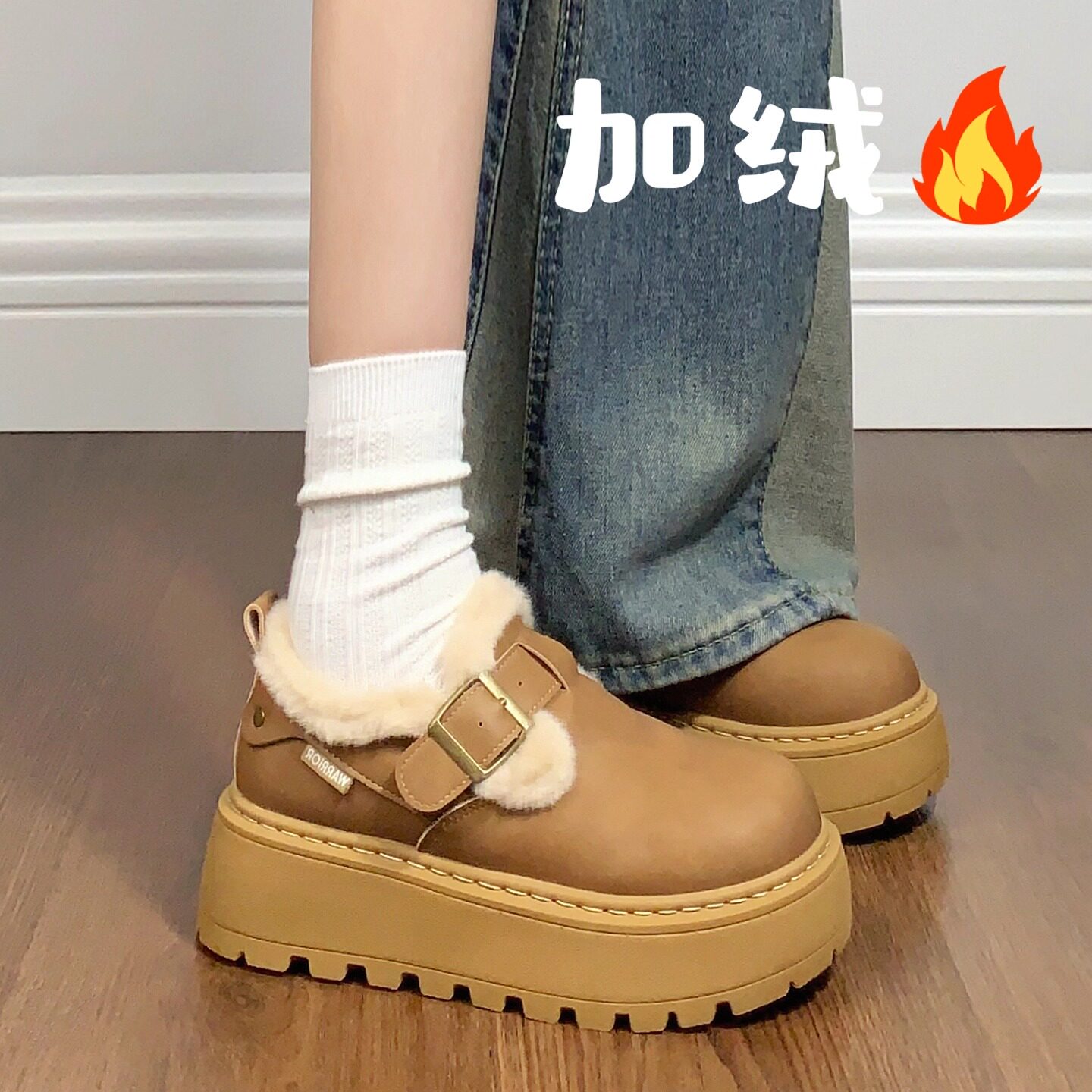 回力冬季女鞋皮毛一体雪地靴女厚底增高2026新款加绒加厚勃肯棉鞋