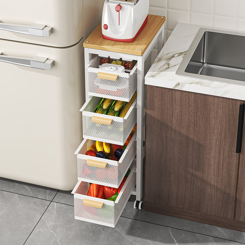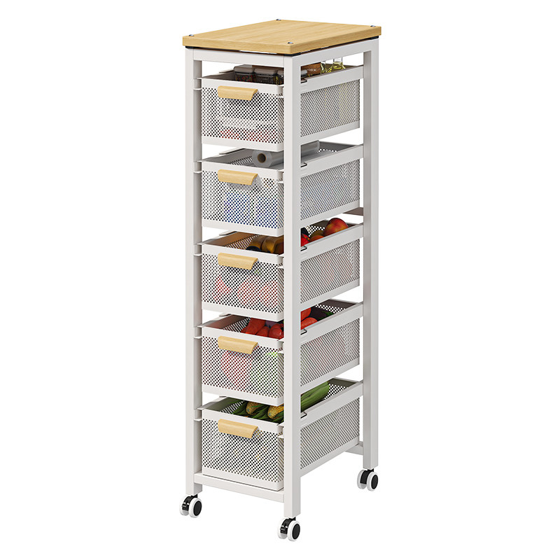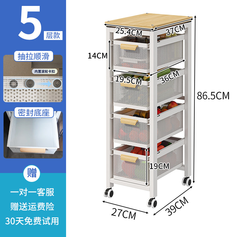 厨房置物架落地多层可移动小推车夹缝收纳架家用多功能蔬菜篮架子