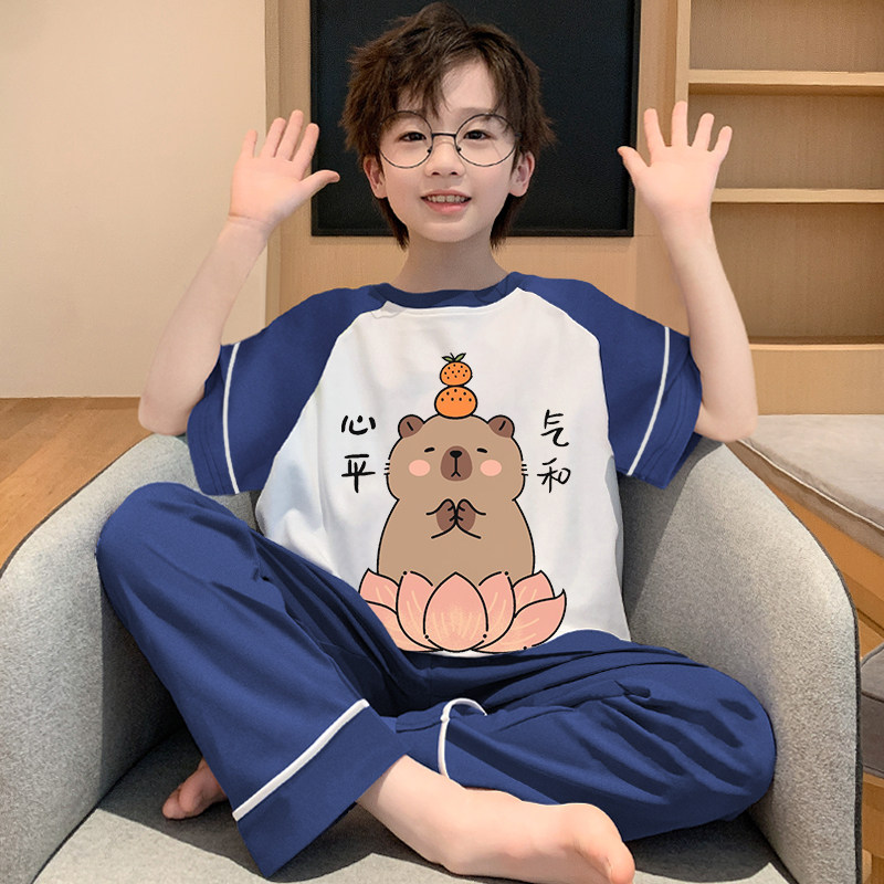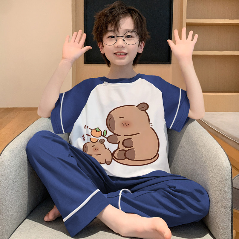 男童睡衣套装夏季薄款短袖男宝宝纯棉卡皮巴拉儿童2025新款家居服