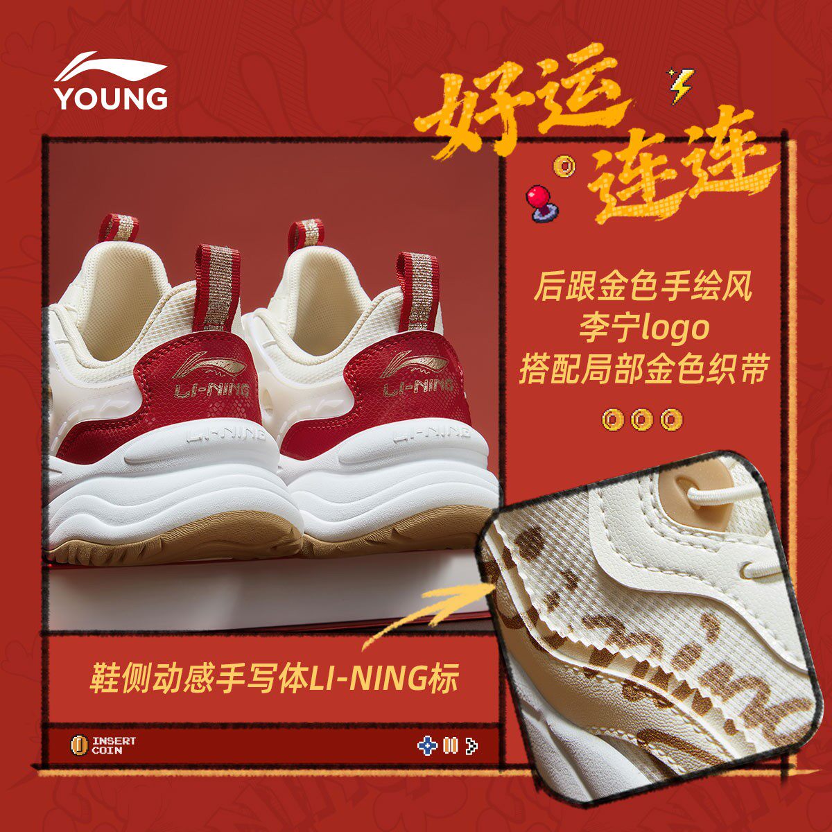 李宁运动鞋儿童2026新年款马年限定减震低帮红色童鞋官方旗舰正品
