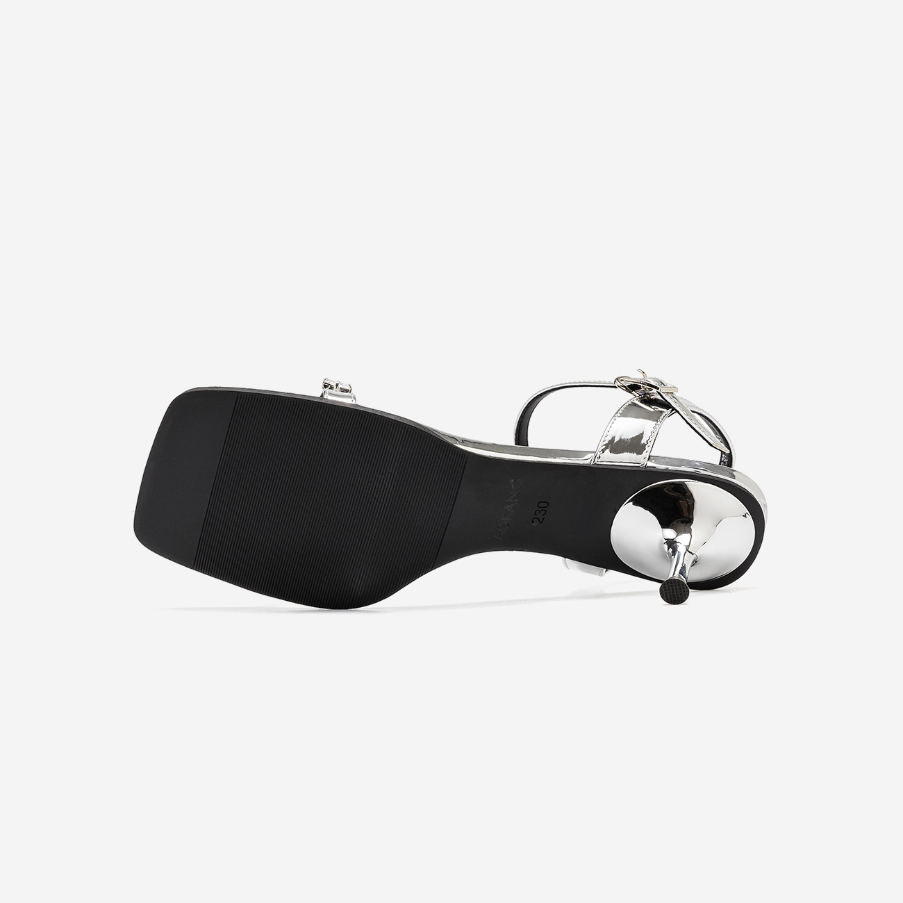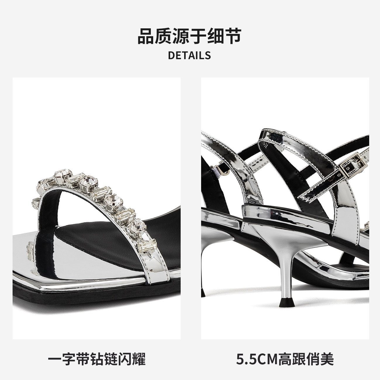 奥康女鞋 夏季新款百搭露趾宴会凉鞋优雅银色细跟高跟鞋