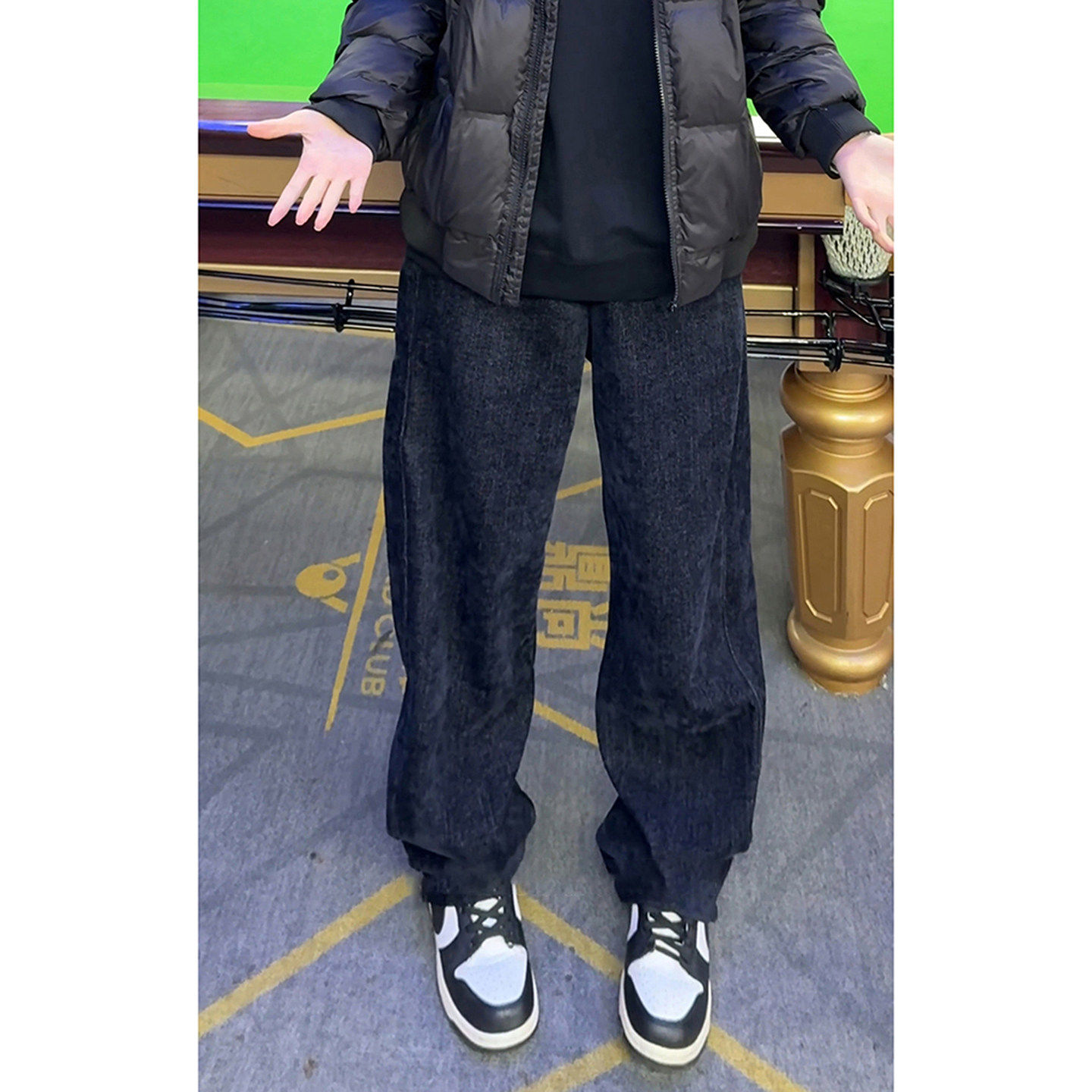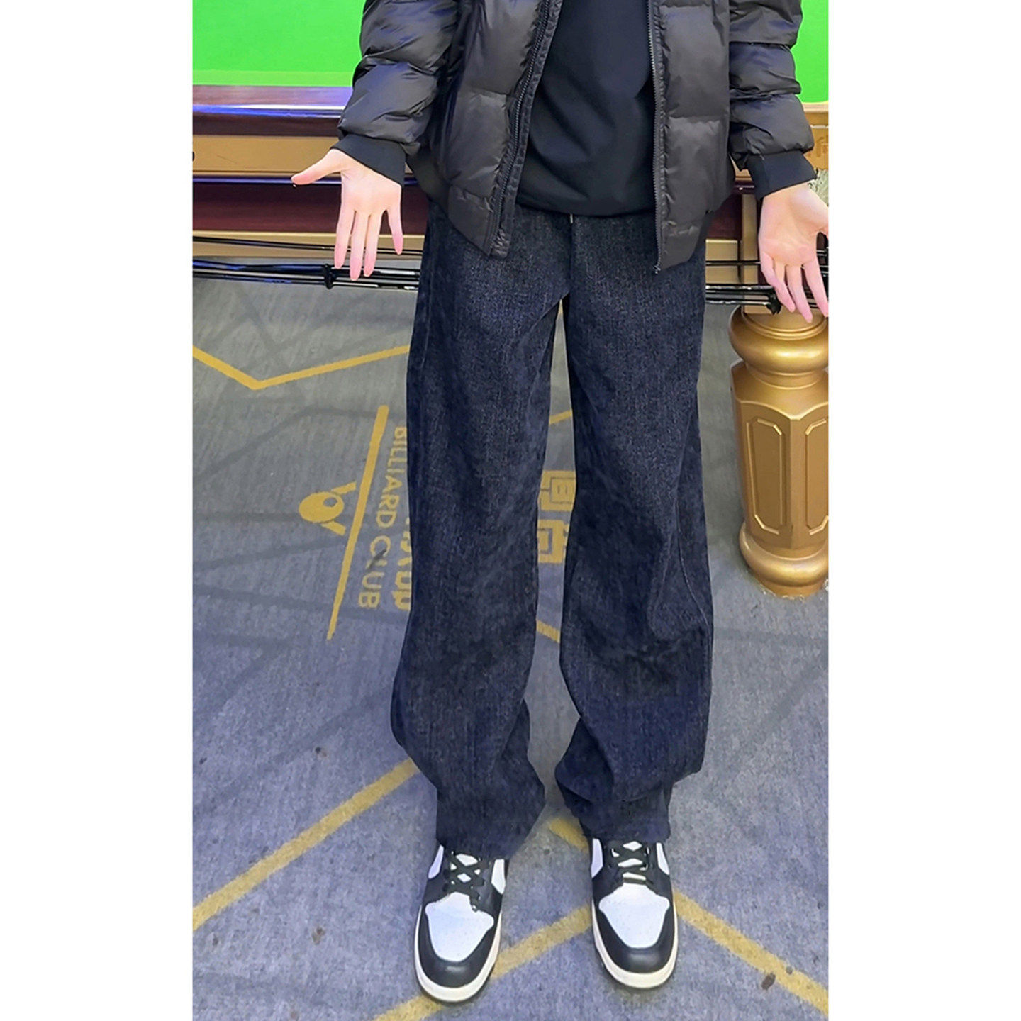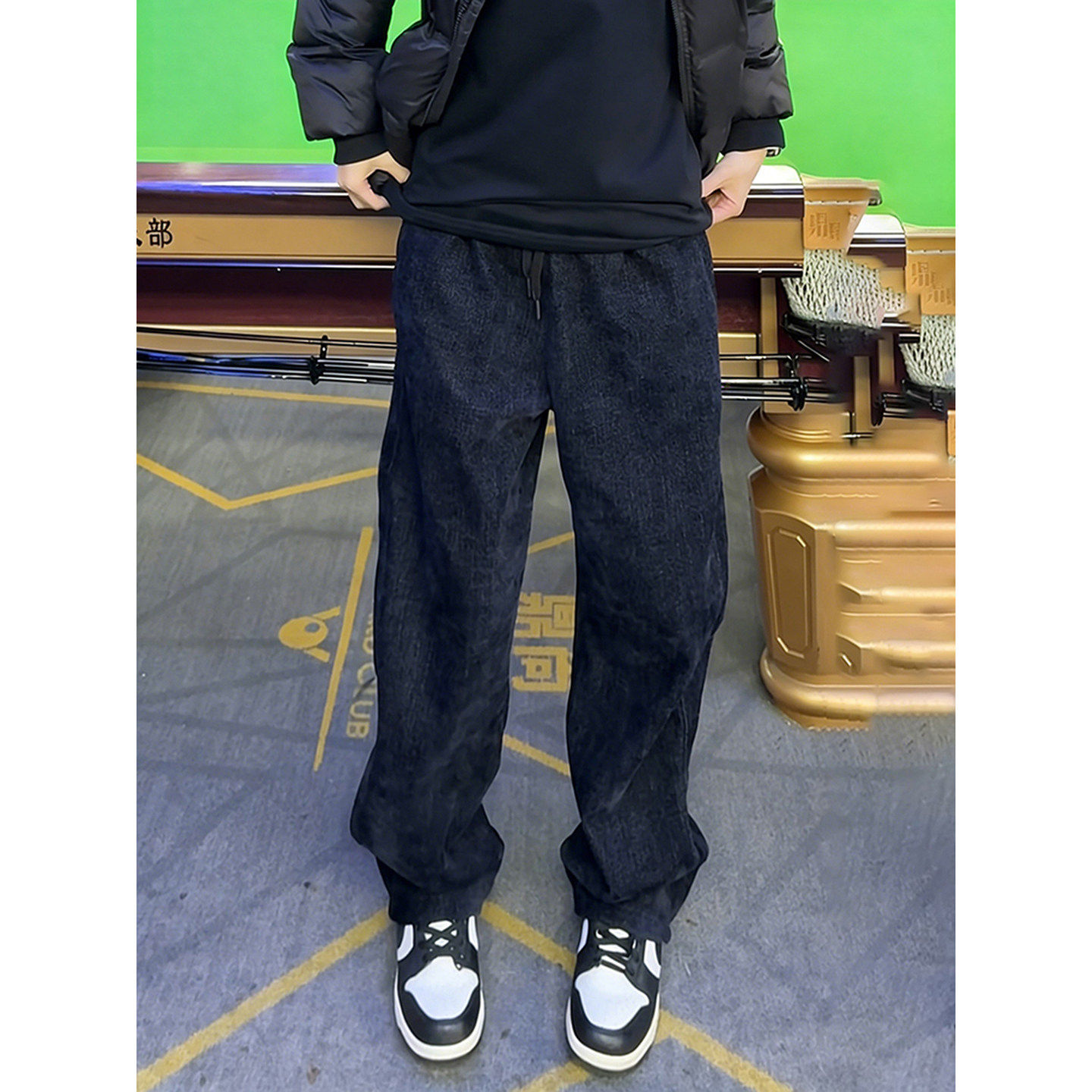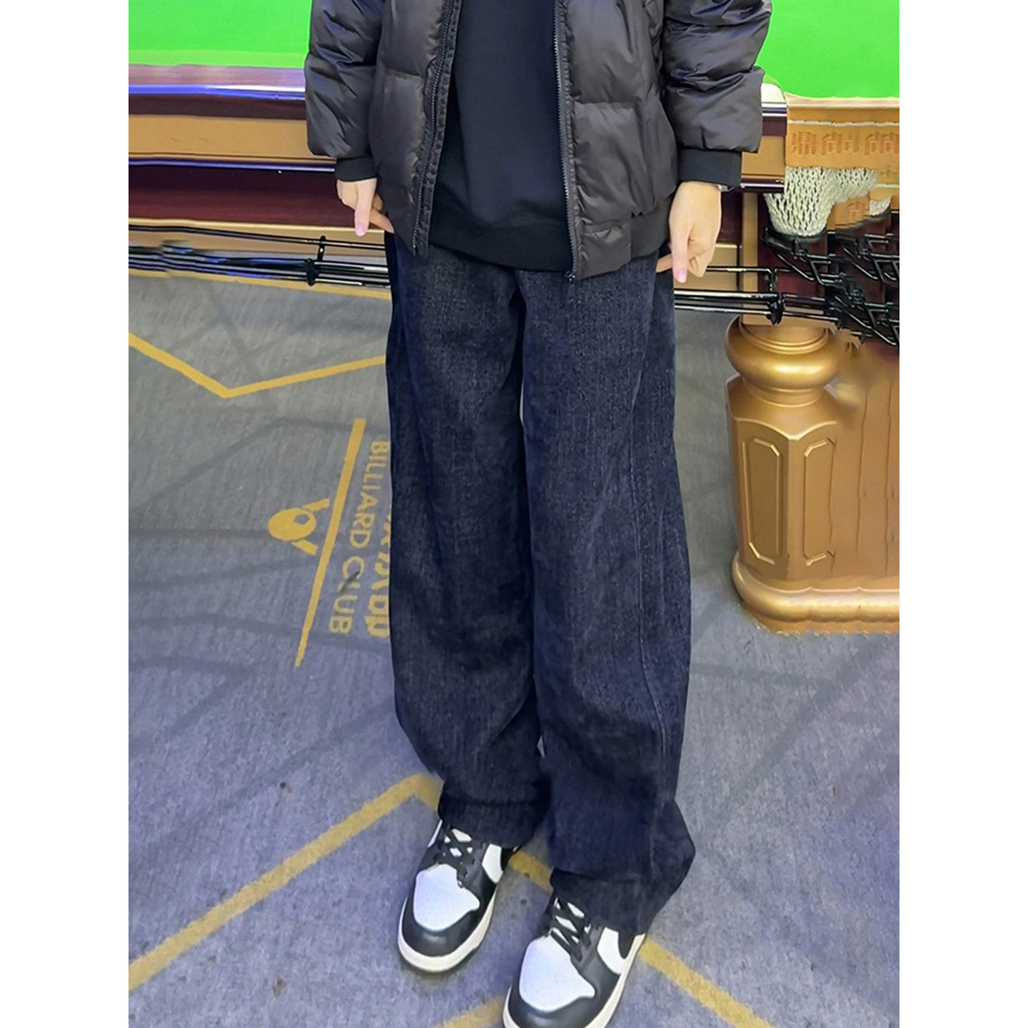深蓝色水洗牛仔休闲裤男款秋冬美式裤子直筒宽松运动垂感微喇卫裤