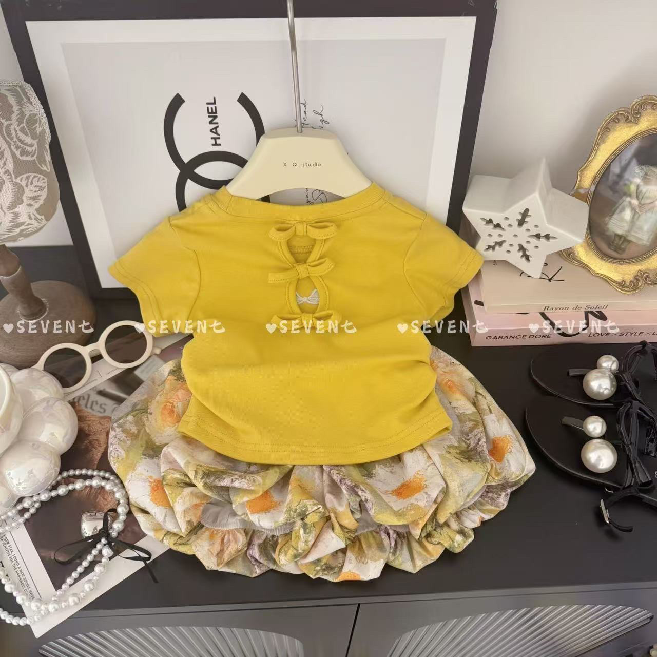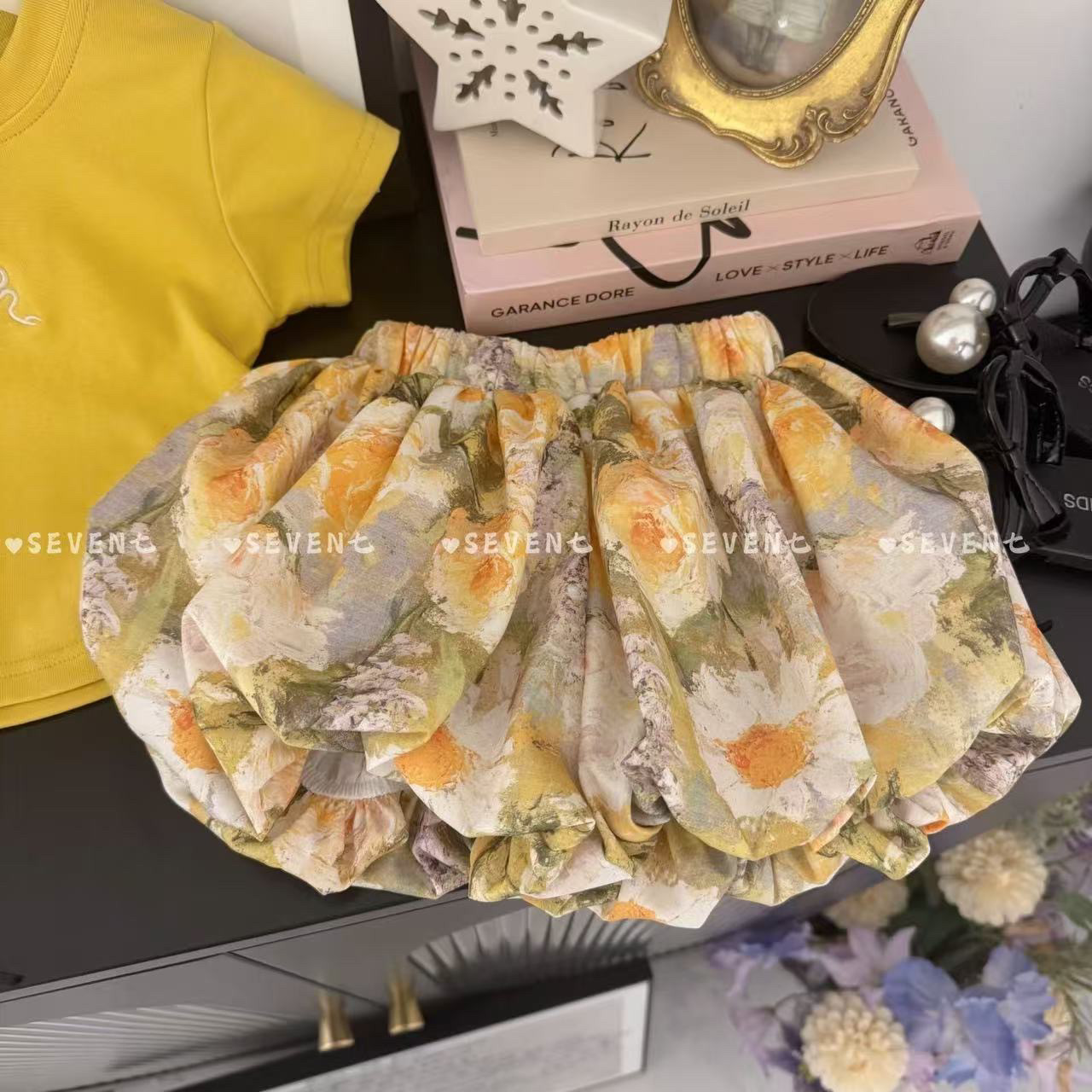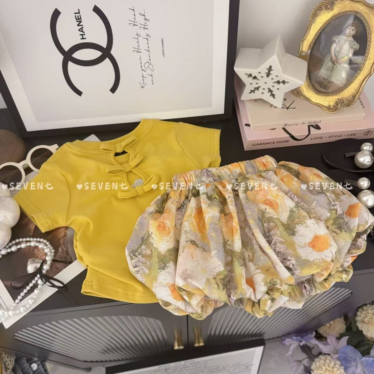 女童夏季套装2025时髦新款宝宝短袖洋气碎花花苞短裤时尚爆款