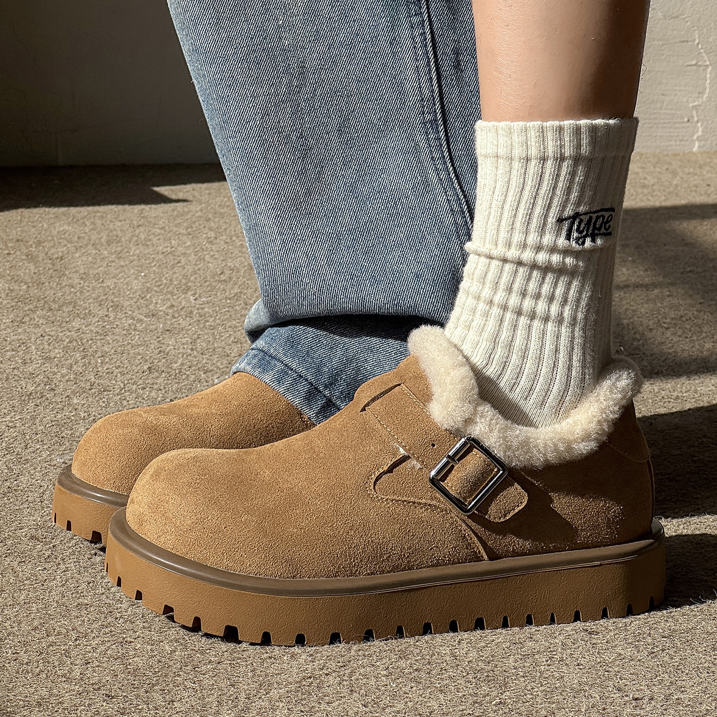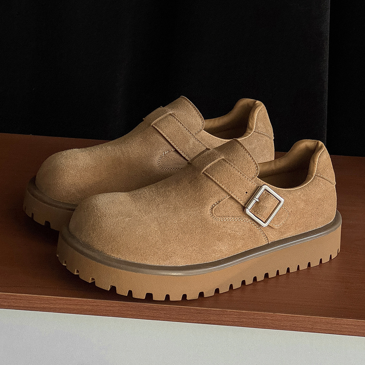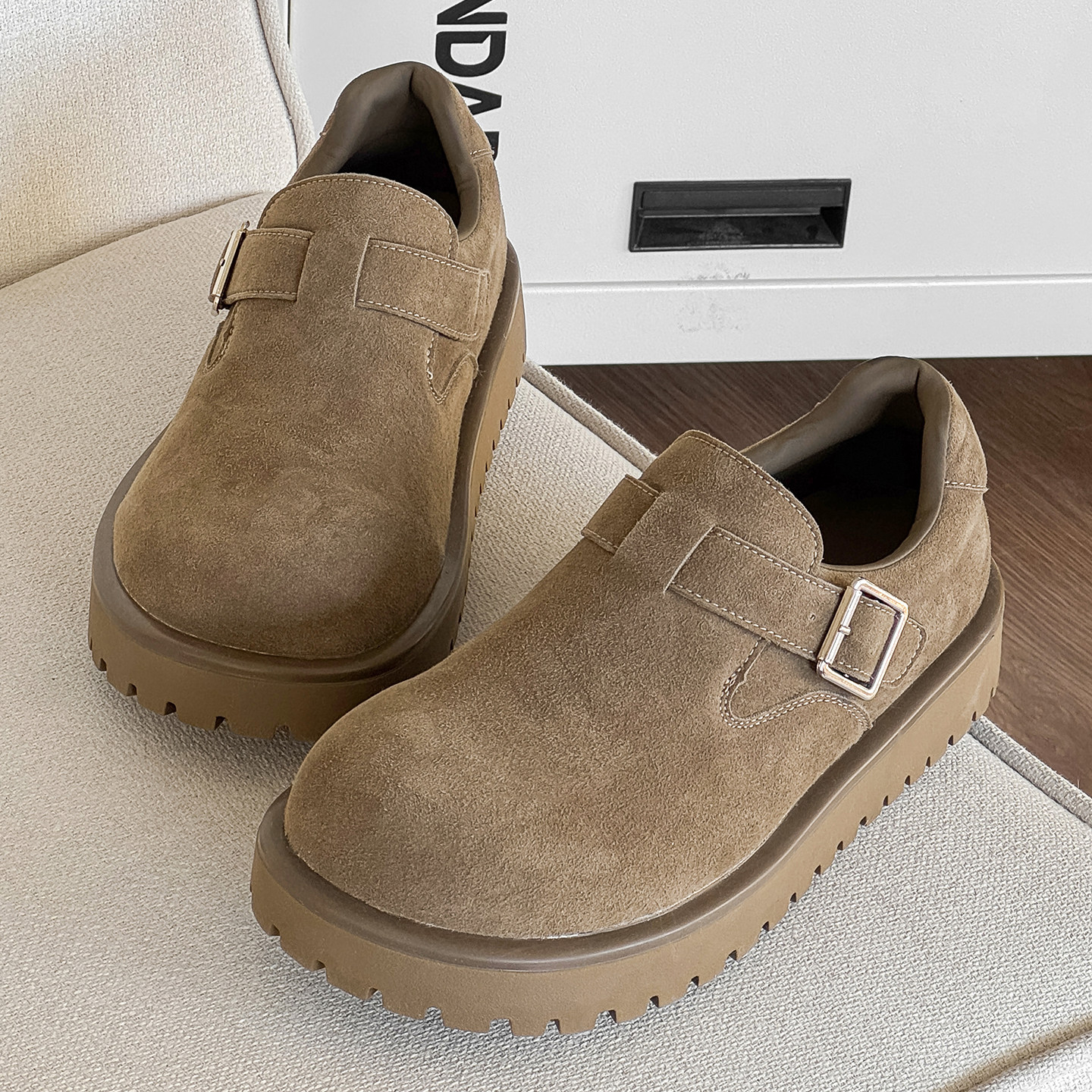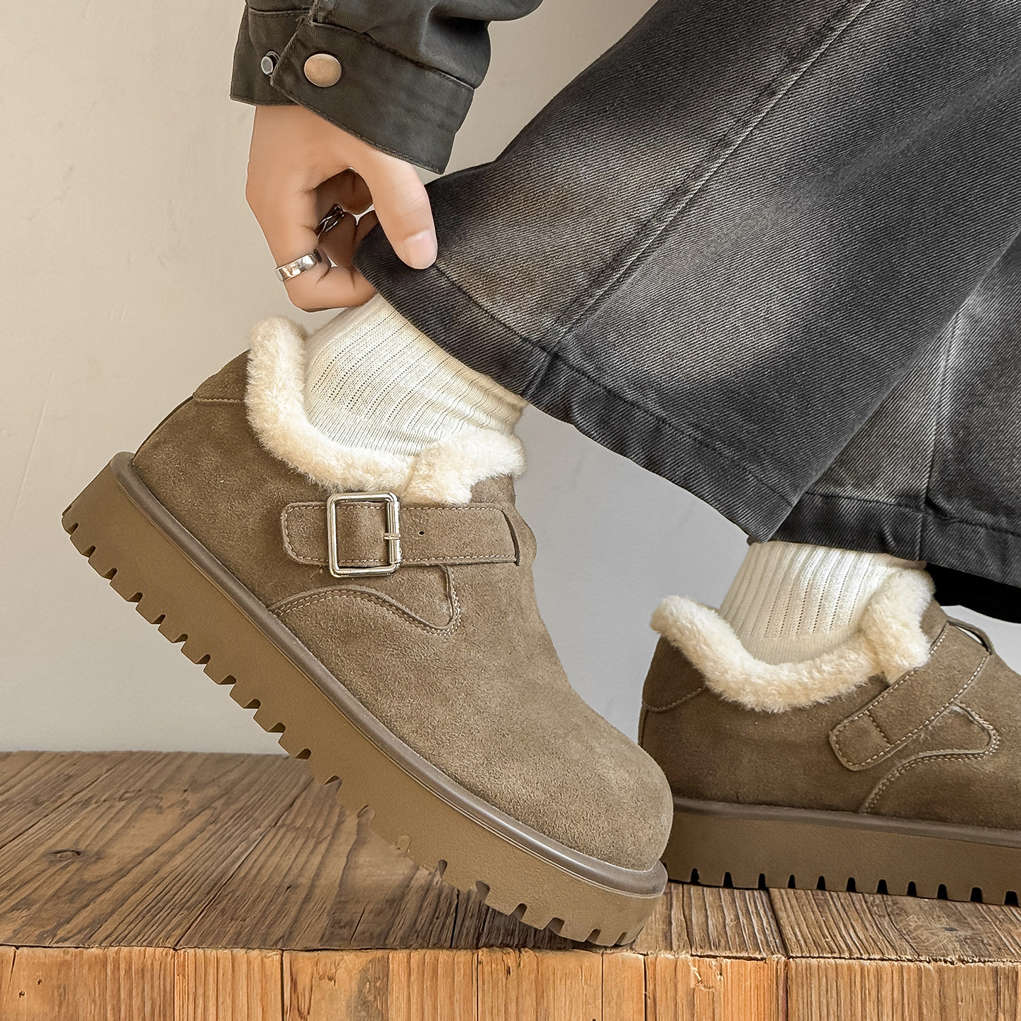 厚底大头勃肯鞋男全包反绒皮冬季加绒保暖轻便防滑一脚蹬增高棉鞋