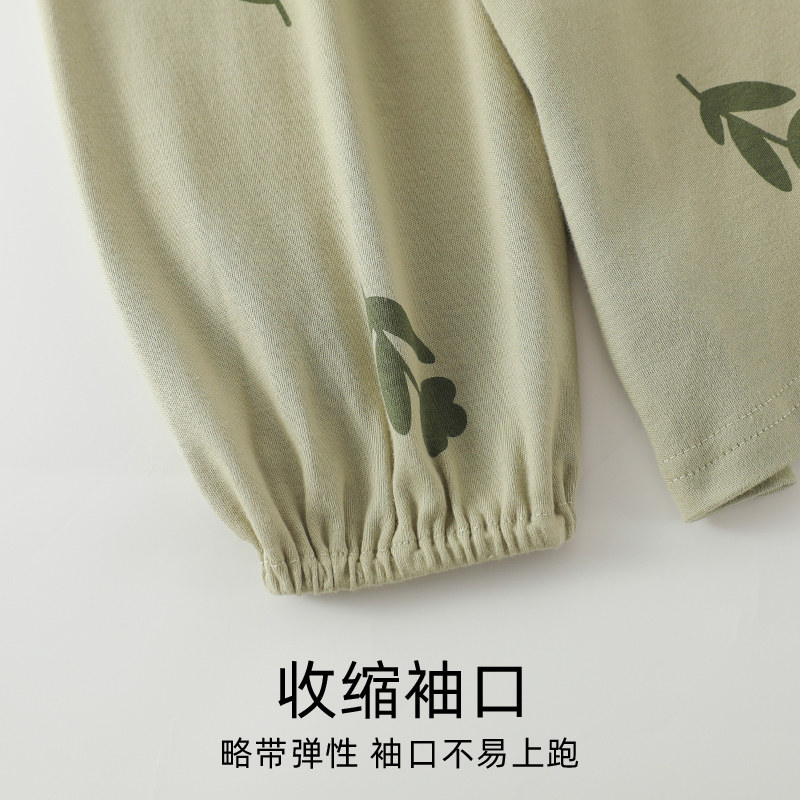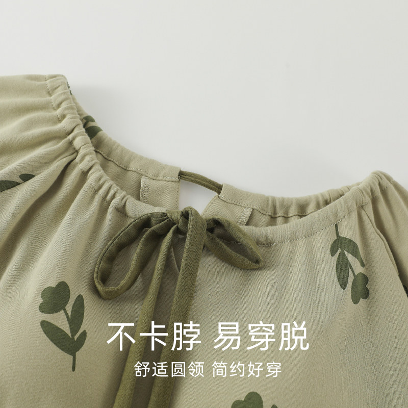 芬腾可安春秋季纯棉薄款睡衣女款长袖长裤套头带胸垫可外穿家居服