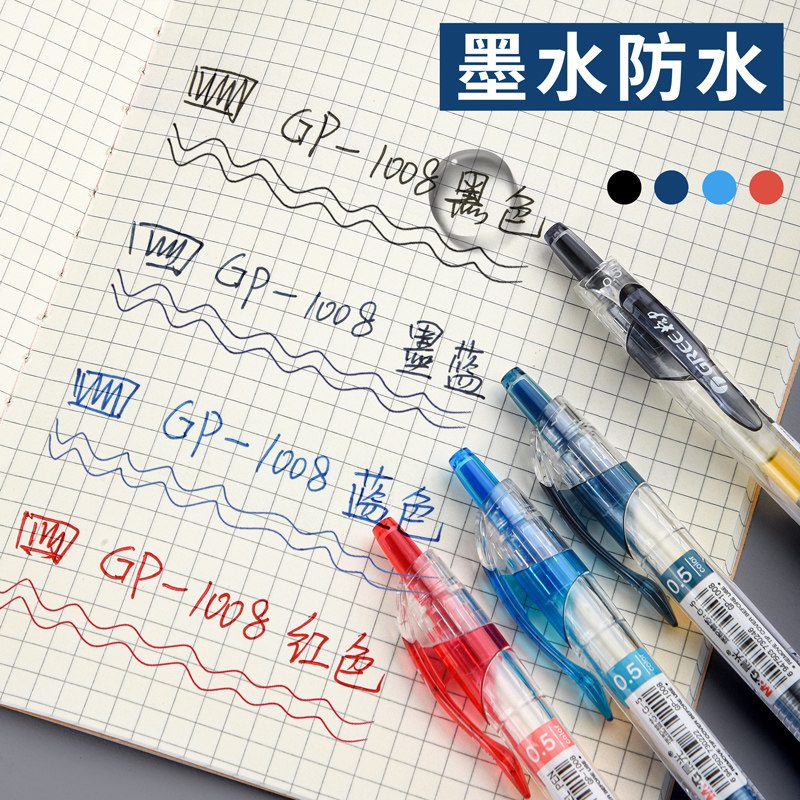 正品晨光中性笔官方旗舰店黑笔圆珠笔学生用签字笔按动水笔考试碳素黑色笔芯0.5mmgp1008k35子弹头墨蓝黑红笔