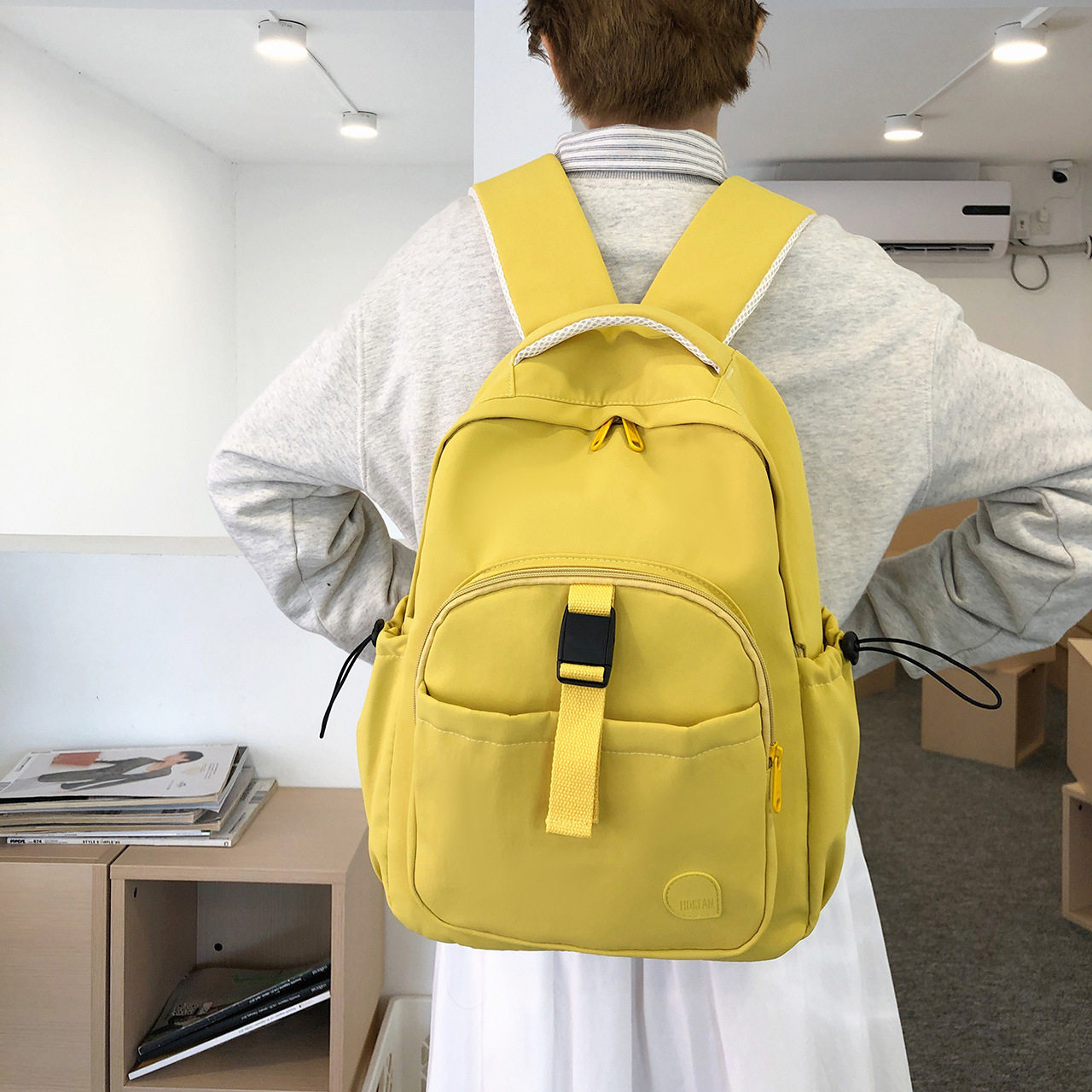 韩版书包初中生女简约双肩包纯色简约校园初高中学生大容量双肩包