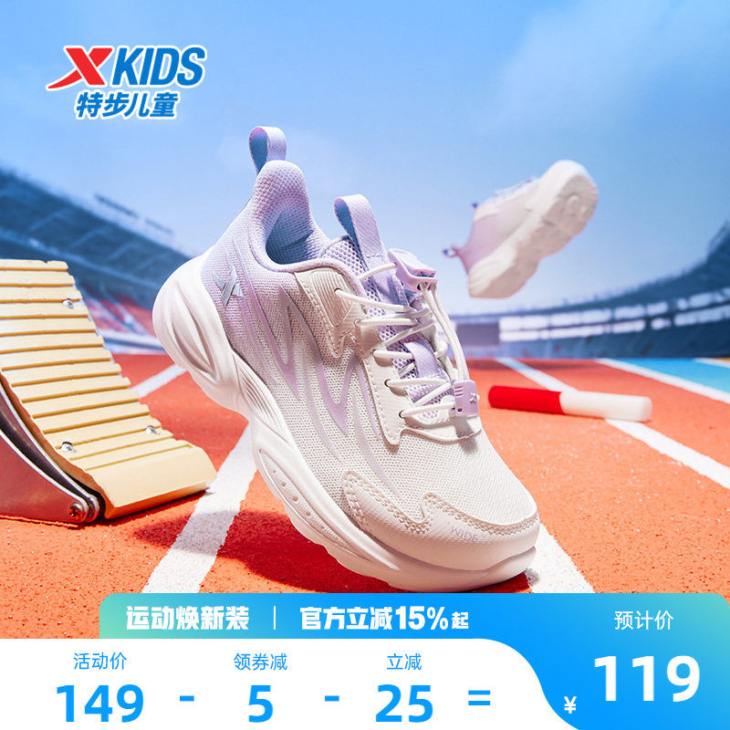 特步童鞋儿童跑步鞋女童春季新款防滑宽楦休闲女中小童宝宝运动鞋