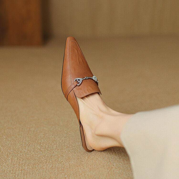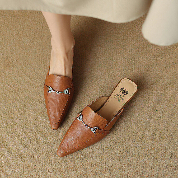 全真皮羊皮超轻超软底小皮鞋女配裙子夏季包头凉拖鞋半拖凉鞋外穿