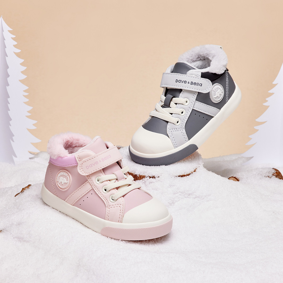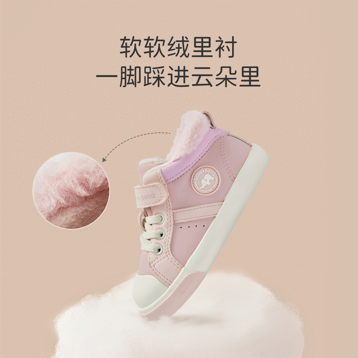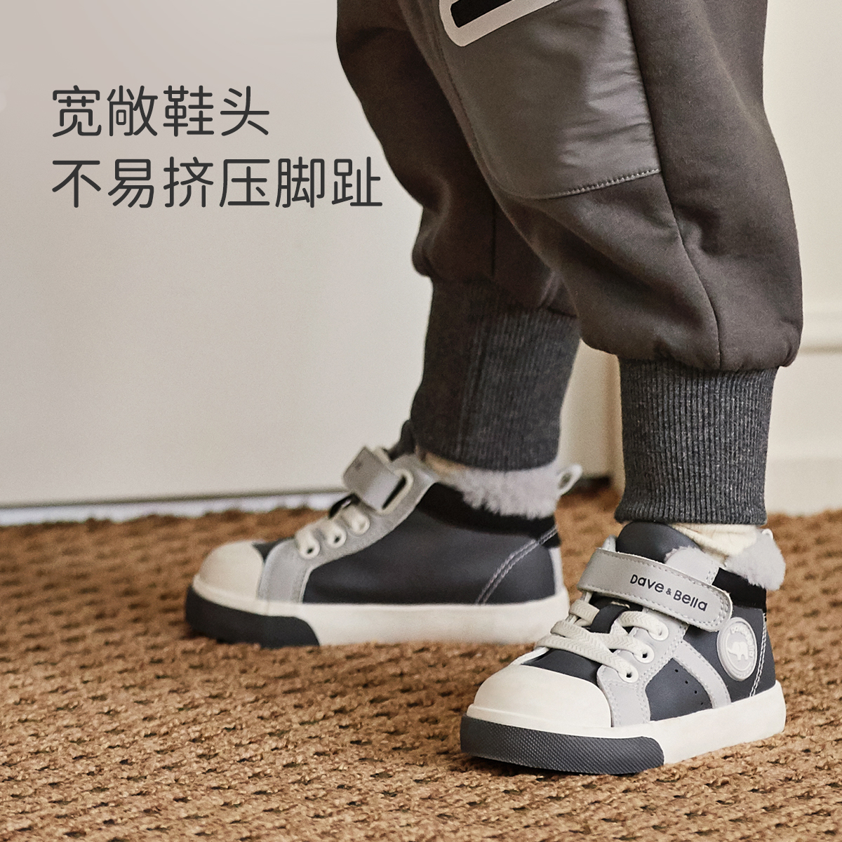 戴维贝拉儿童加绒鞋子男童学步鞋冬季女童板鞋机能鞋反季清仓