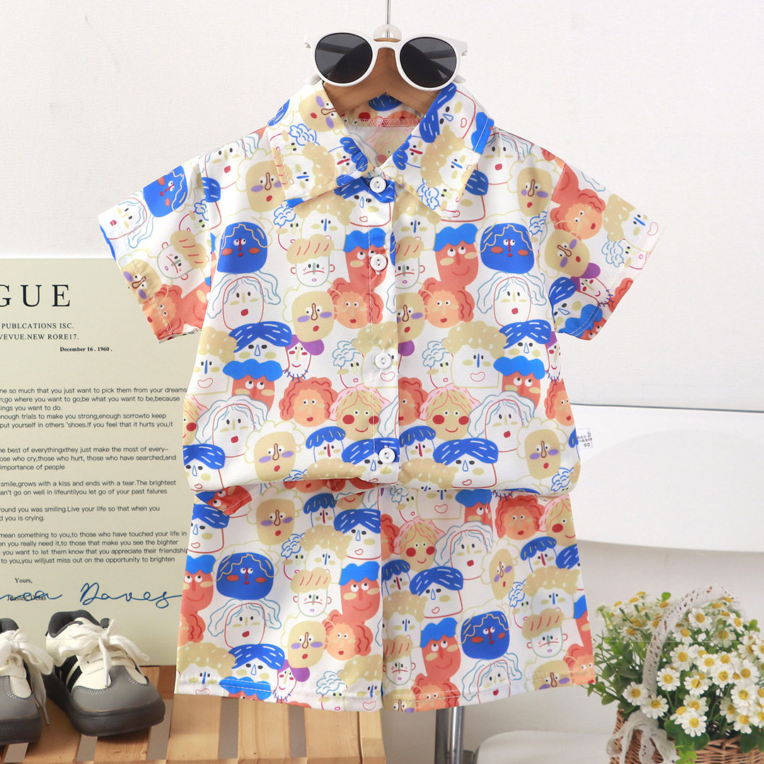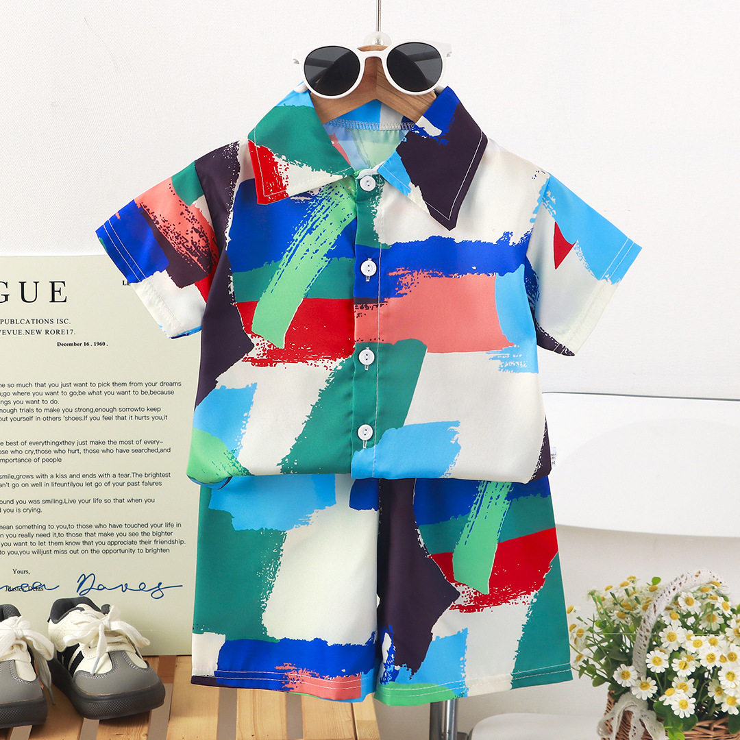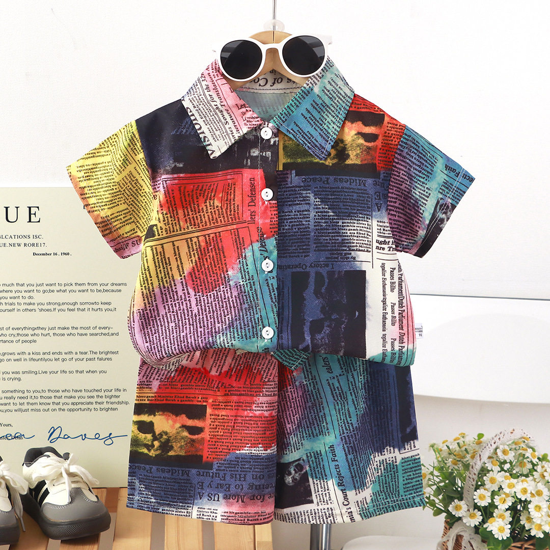 儿童夏季套装洋气男童港风衬衣中大童衬衫短袖T恤短裤男孩痞帅潮