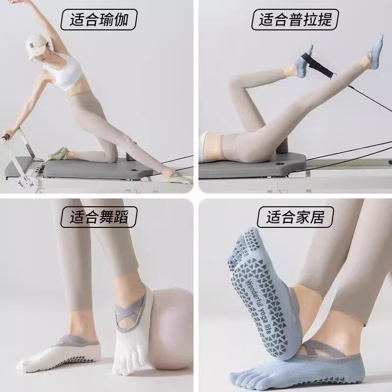 瑜伽袜普拉提袜子防滑专业女五指袜夏秋纯棉室内运动健身女