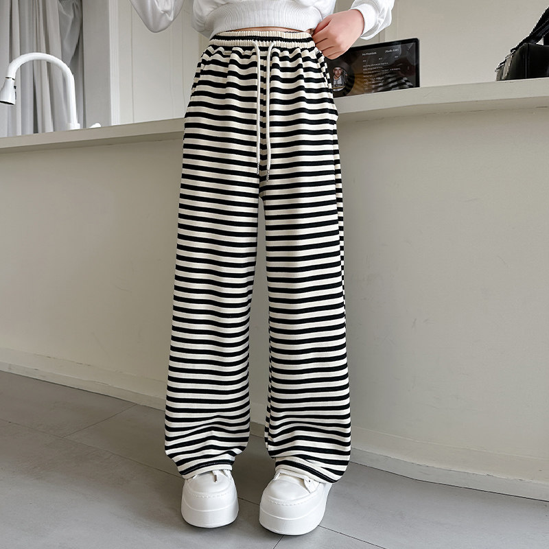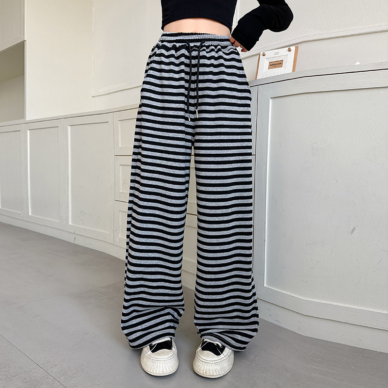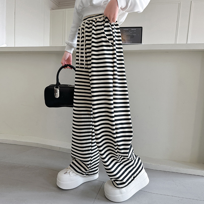 女童裤子2025新款春夏装大童纯棉休闲针织阔腿裤儿童春季条纹长裤