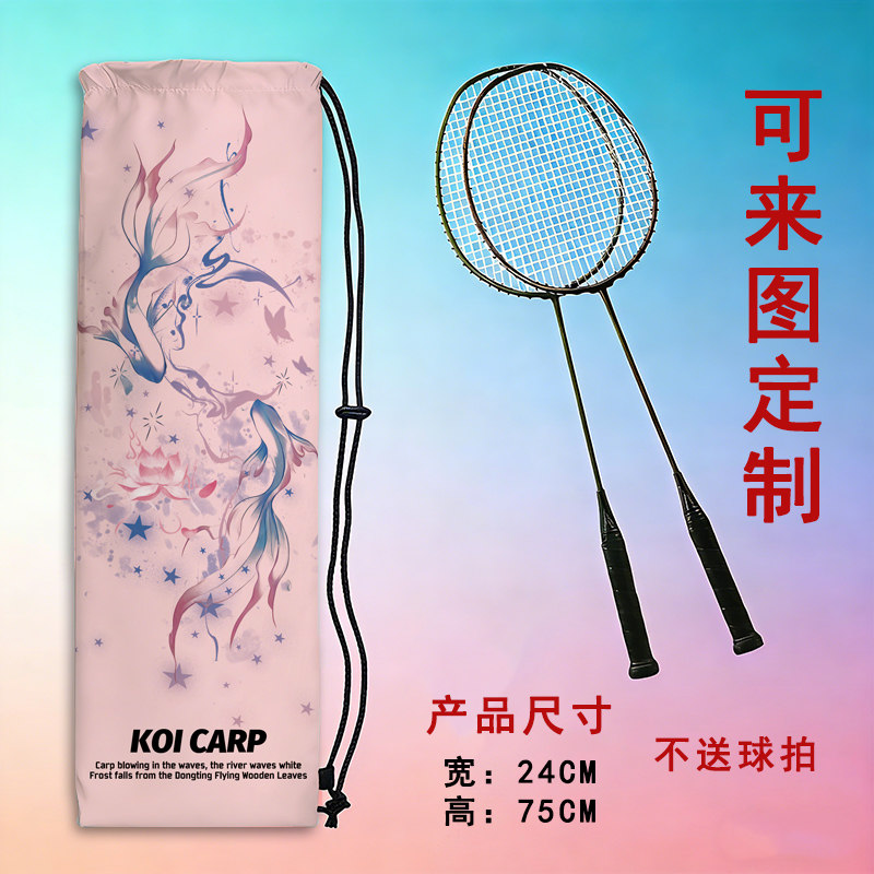 羽毛球拍便携收纳袋鱼印花保护套定制斜跨背包单肩抽绳挎包束口袋