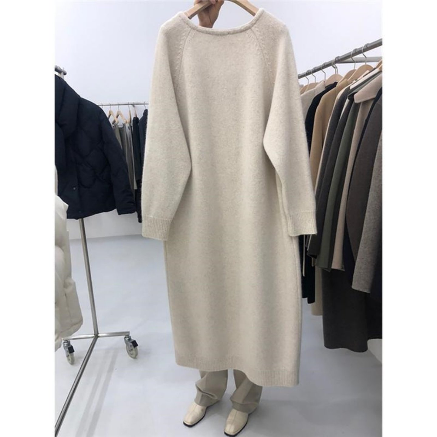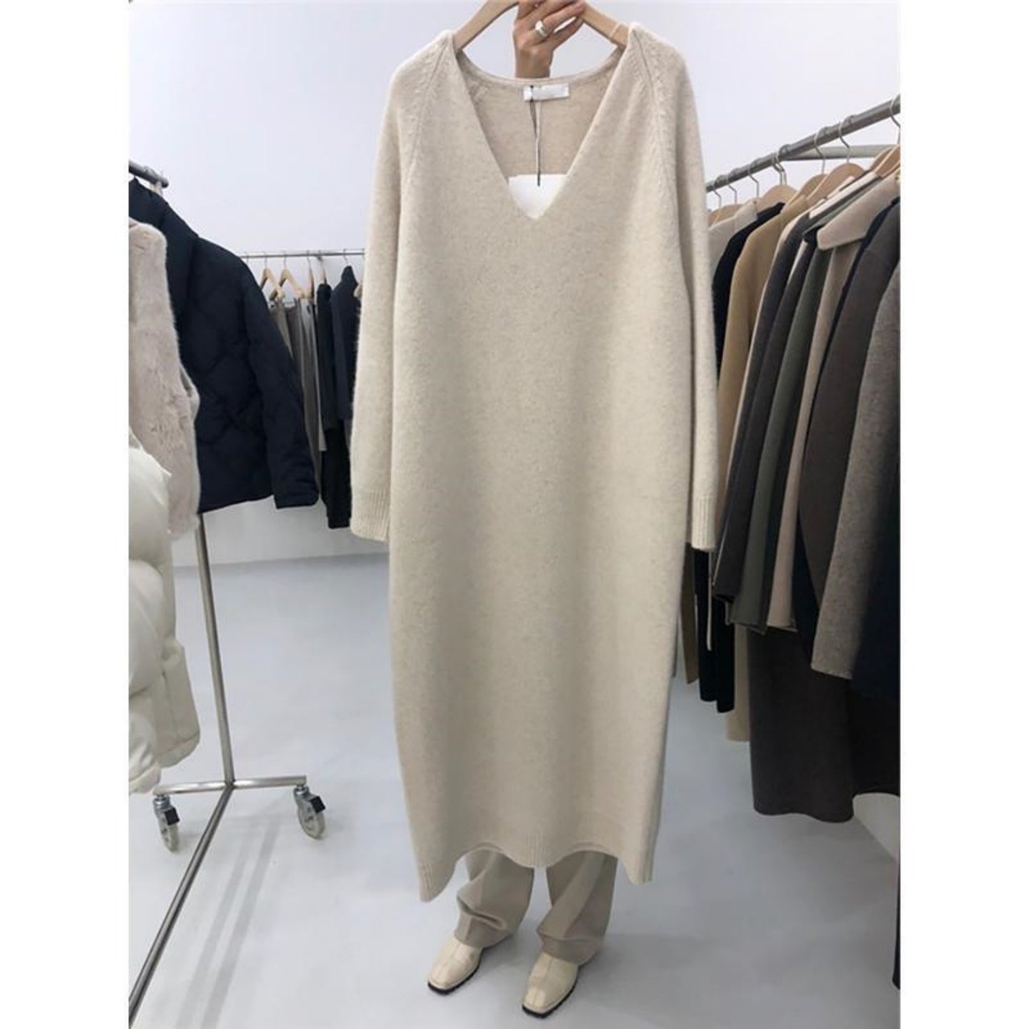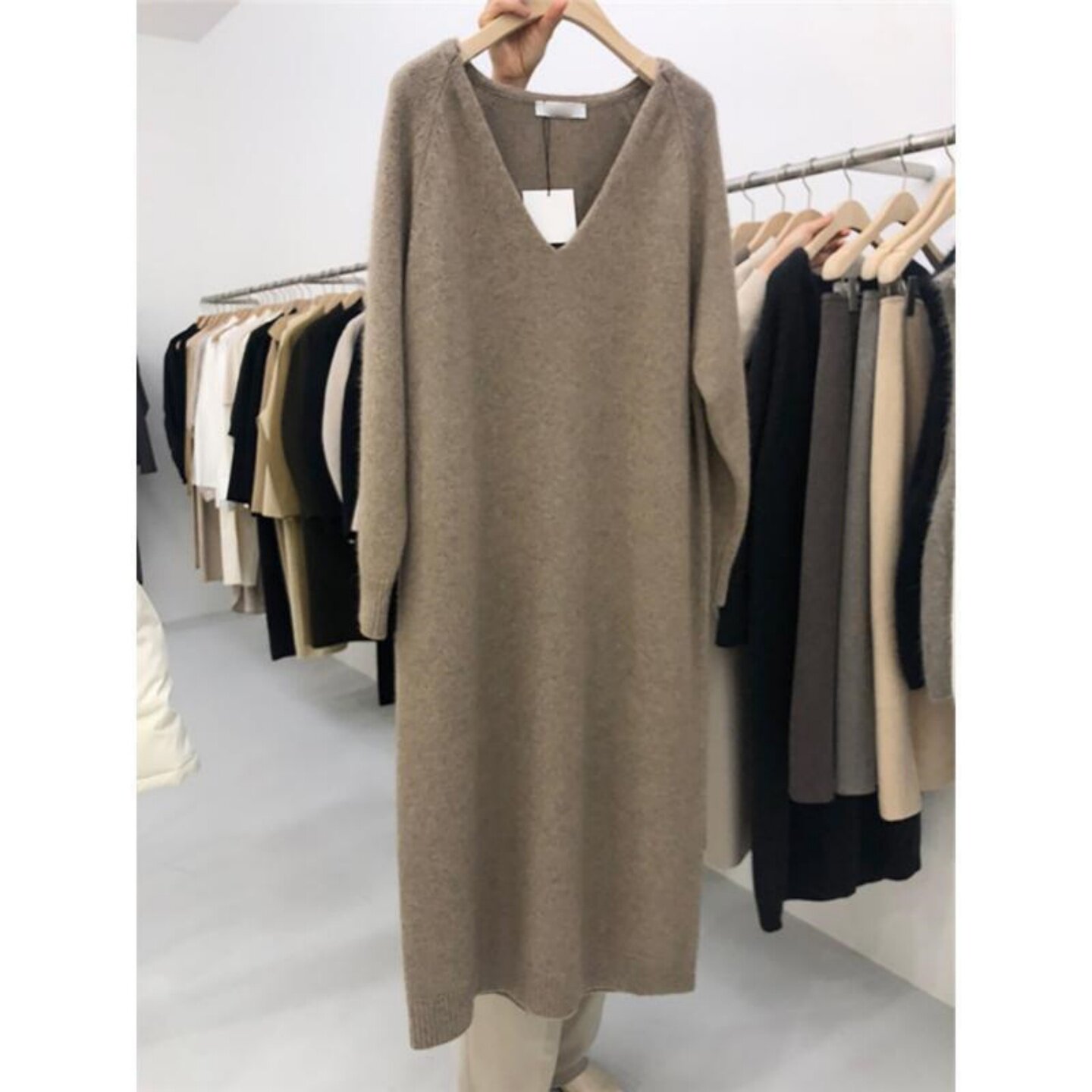 胖MM特大码300斤毛衣裙过膝长款秋冬内搭宽松V领打底针织连衣裙女
